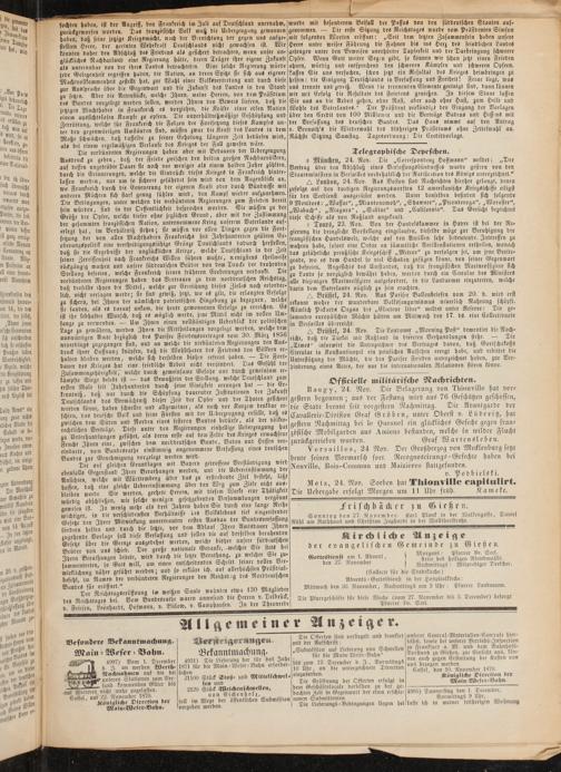 einbntte, vom Bundesrathe einstimmig angenommene Verfassung eine« deutschen Versailles, 24 Nov, Der Großherzog von Mecklenburg setzt Bunde«'zur Genehmigung vorgelegt werden wird, houte seinen Vormarsch fort, Reeognoöeirungs-Gefechte haben bei