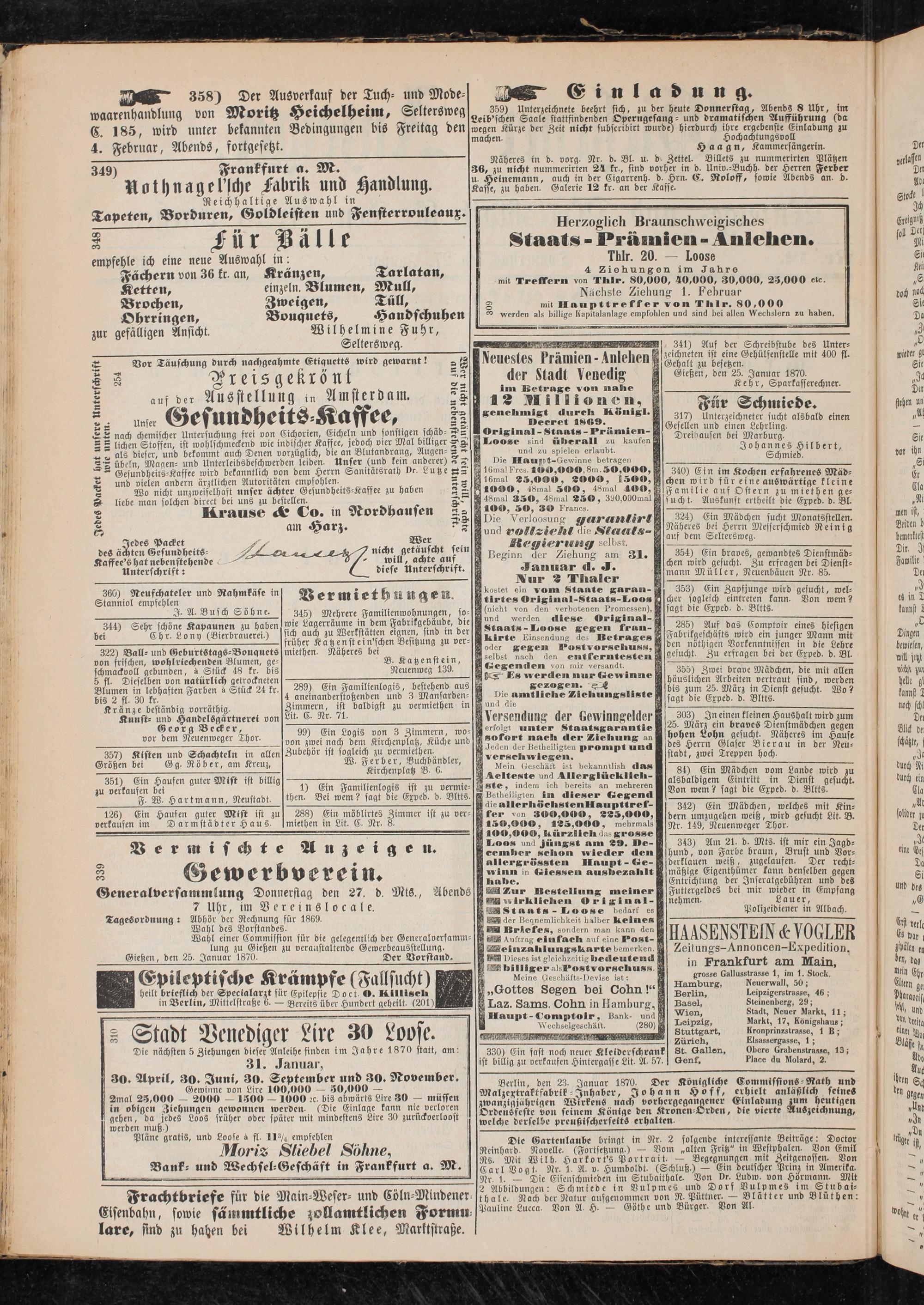 358) Der Ausverkauf der Tuch- Uttd Mode- waarenhandlung von Moritz Heichelheim, Seltersweg, C. 185, wird unter bekannten Bedingungen bis Freitag den 4. Februar, Abends, fortgesetzt.__________________________________
