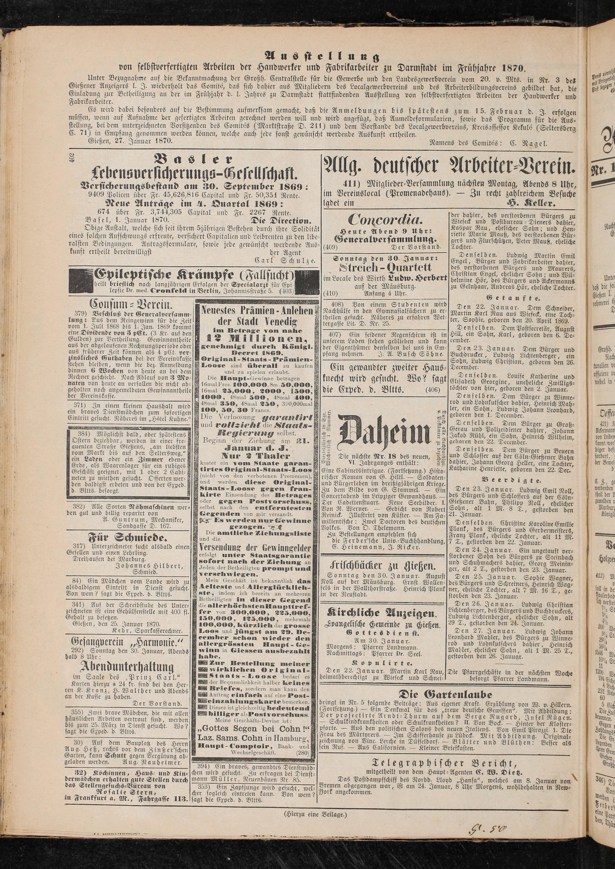 Gießen, 27. Januar 1870. ' Namens des Comites: C- Nagel.