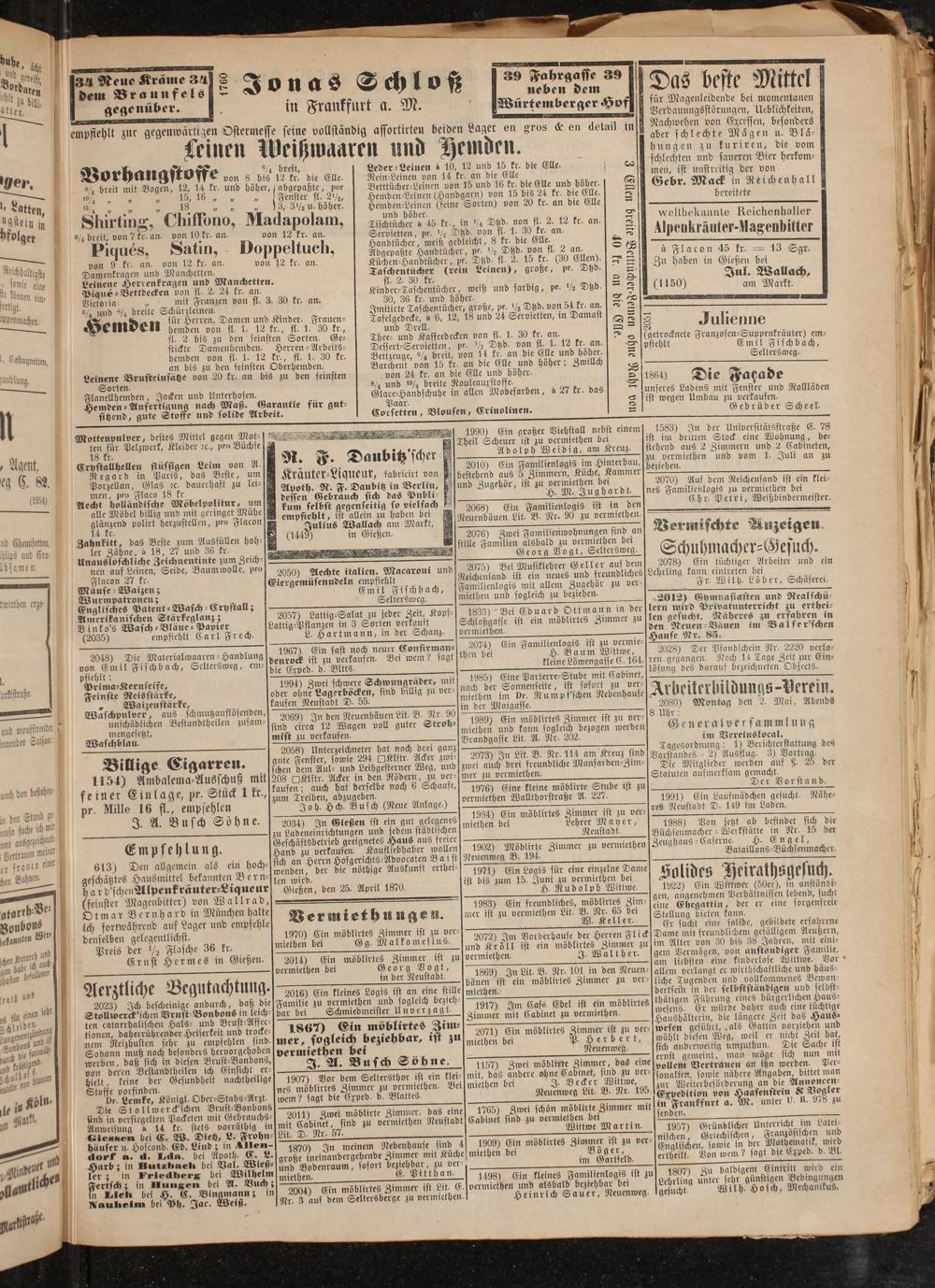 1984) Ein möblirtes Zimmer ist zu vermiethen bei Lehrer Mayer,
