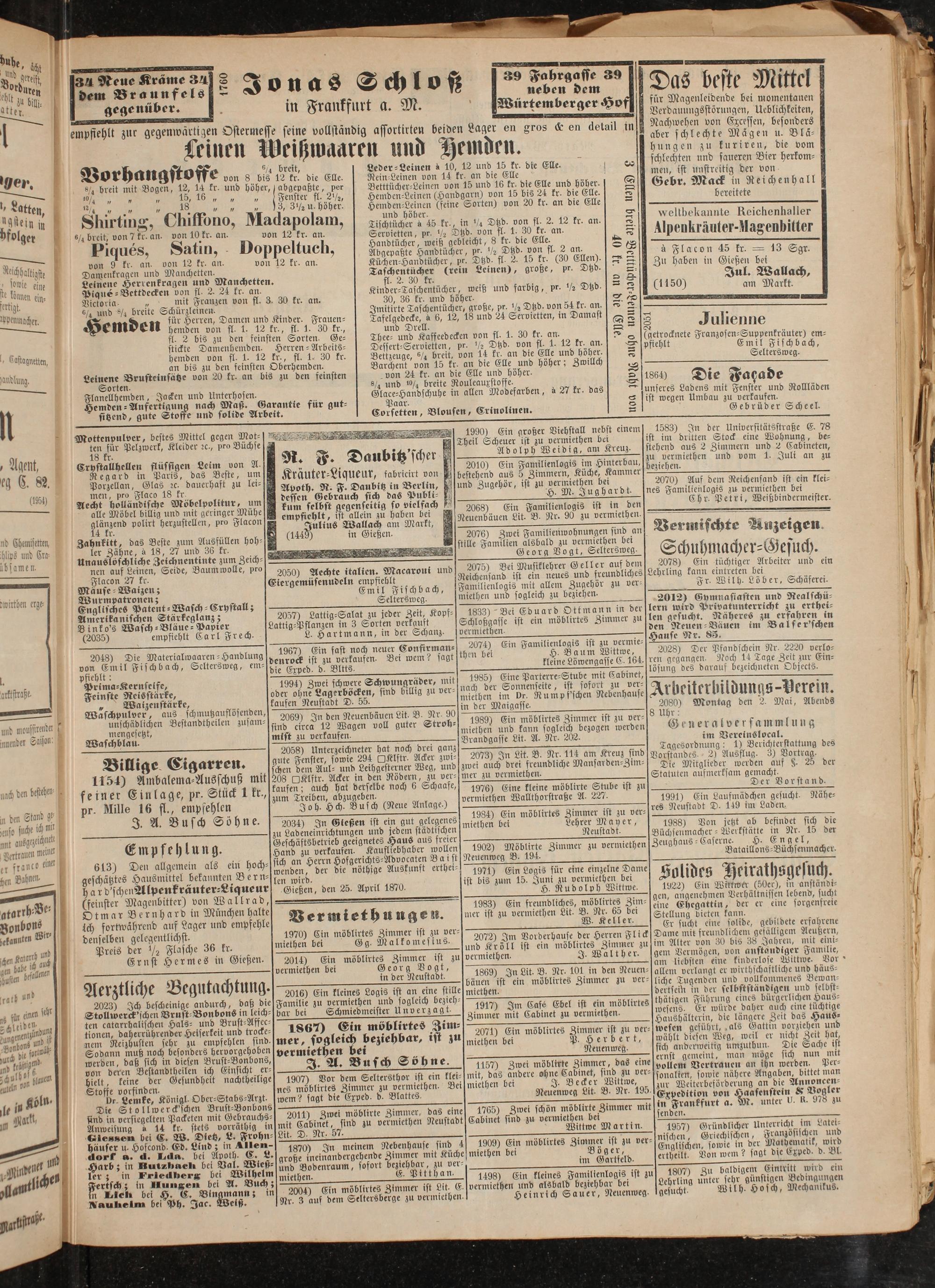 1870) In meinem Nebenhause sind 4 große ineinandergehende Zimmer mit Küche und Bodenraum, sofort beziehbar, zu ver- miethen.___6. P'tthan—