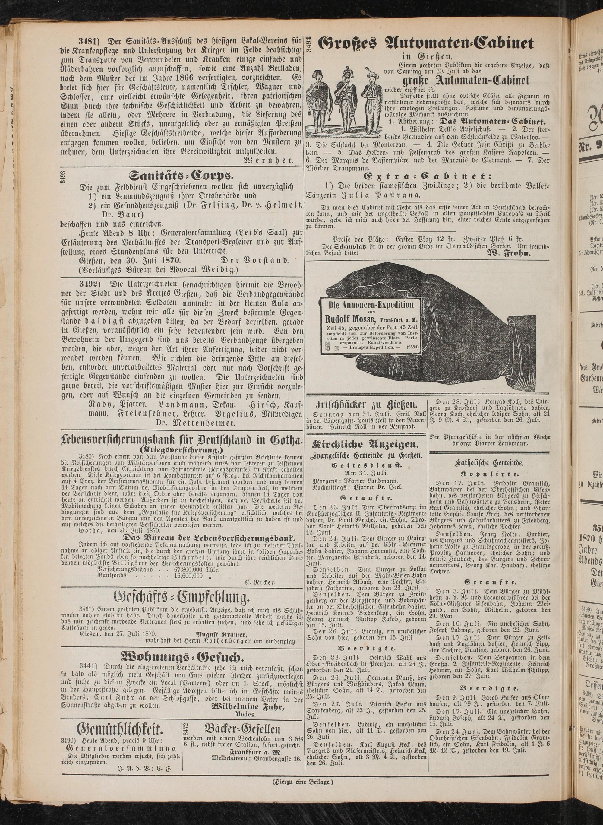 Gießen, den 30. Juli 1870. Der Vorstand.
