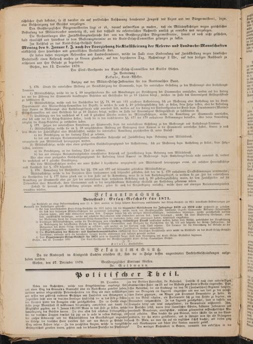 Gießen, den 22. December 1870. Der Civil-Vorsitzende der Großherz^glrchen Krtls- Ersatz- Commission Gießen.