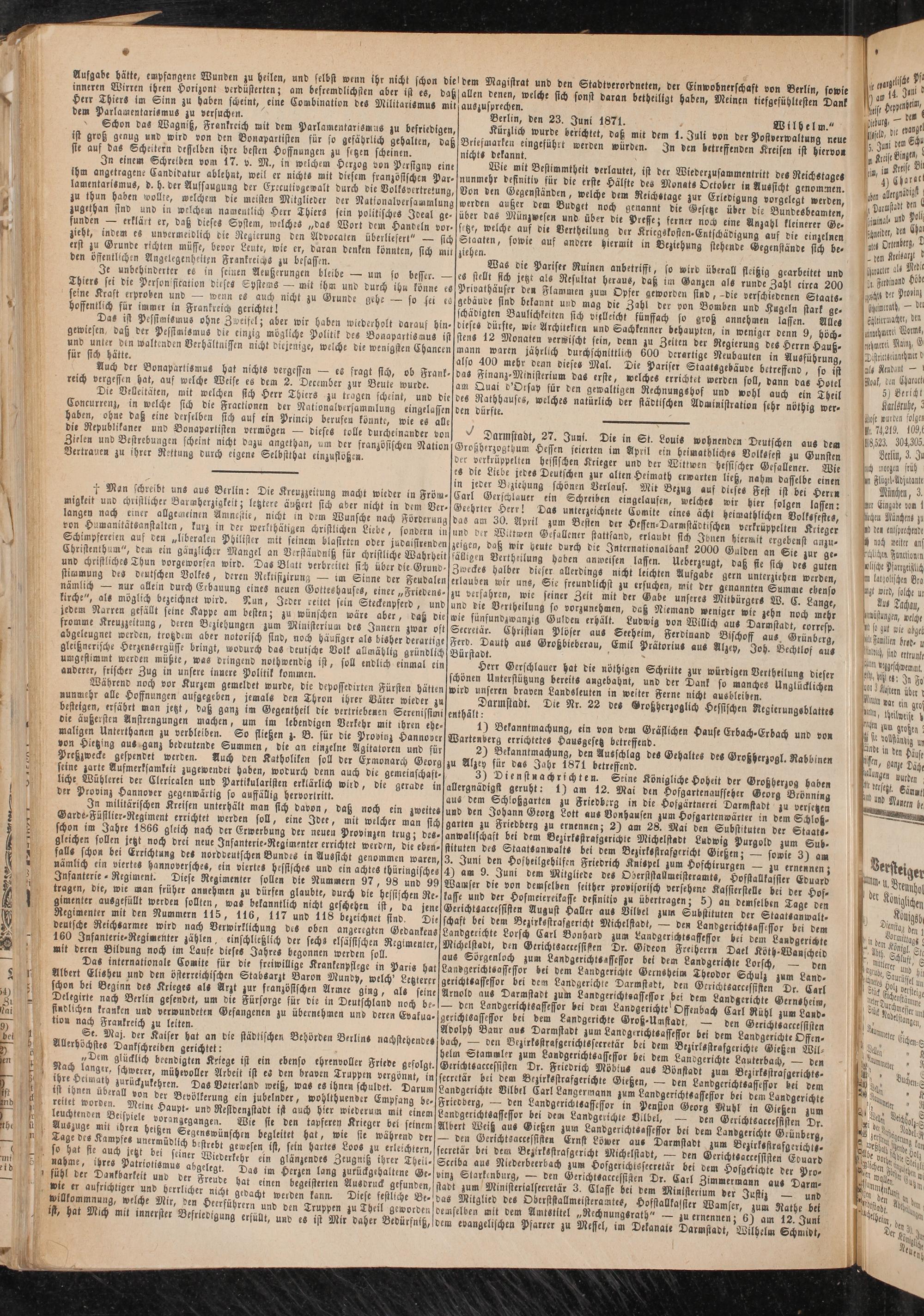 Berlin, den 23. Juni 1871. Wilb-lm"
