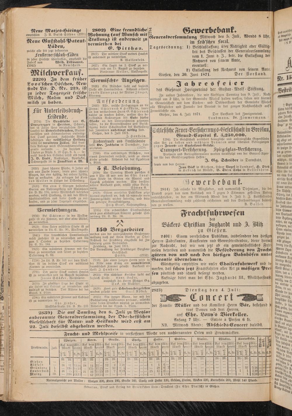 Gießen, den 4. Juli 1871. Der Vorstand des Zweigvereins.
