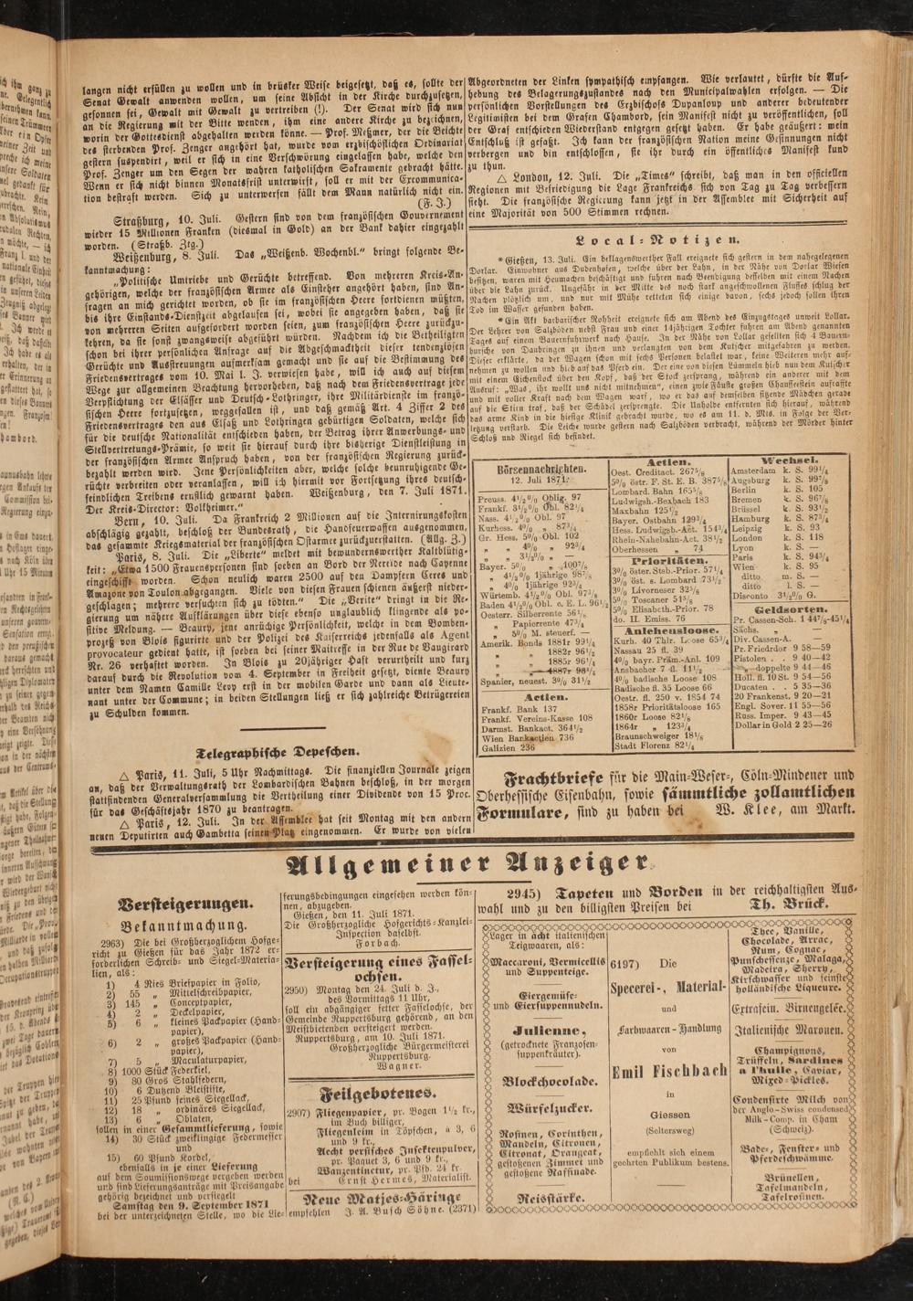 Straftlttira. 10. Juli. Gestern sind von dem französischen Gouvernement wieder 15 Millionen Franken (diesmal in Gold) an der Bank dahier eingezahlt "°'^WeißnMrg,8^Juii. Das „W-iß-nb. Wochenbl.» bringt folgend- Be.