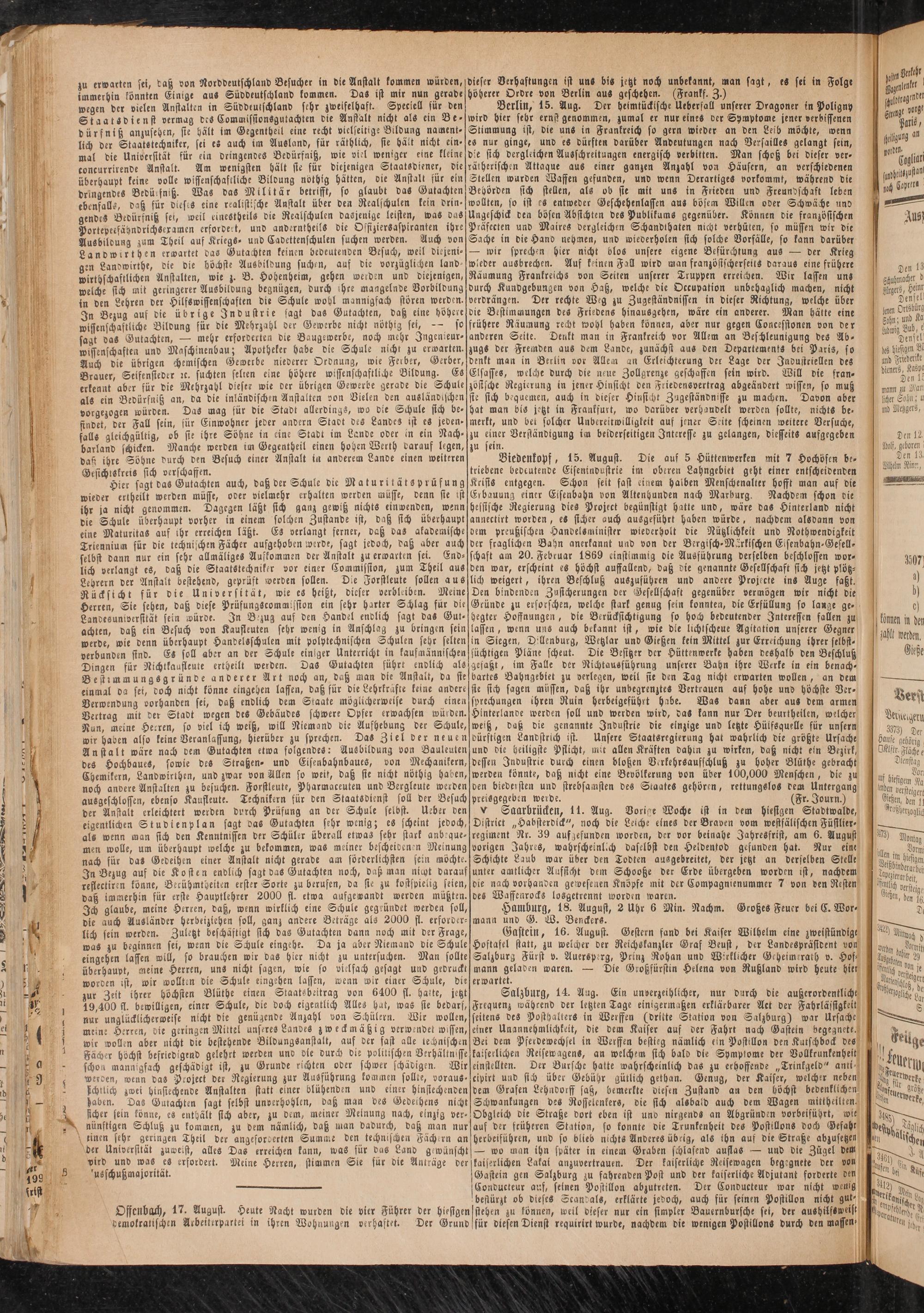 Offenbach, 17. August. Heute Nacht wurden die vier Führer der hiesigen demokratischen Arbeiterpartei in ihren Wohnungen verhaftet. Der Grund