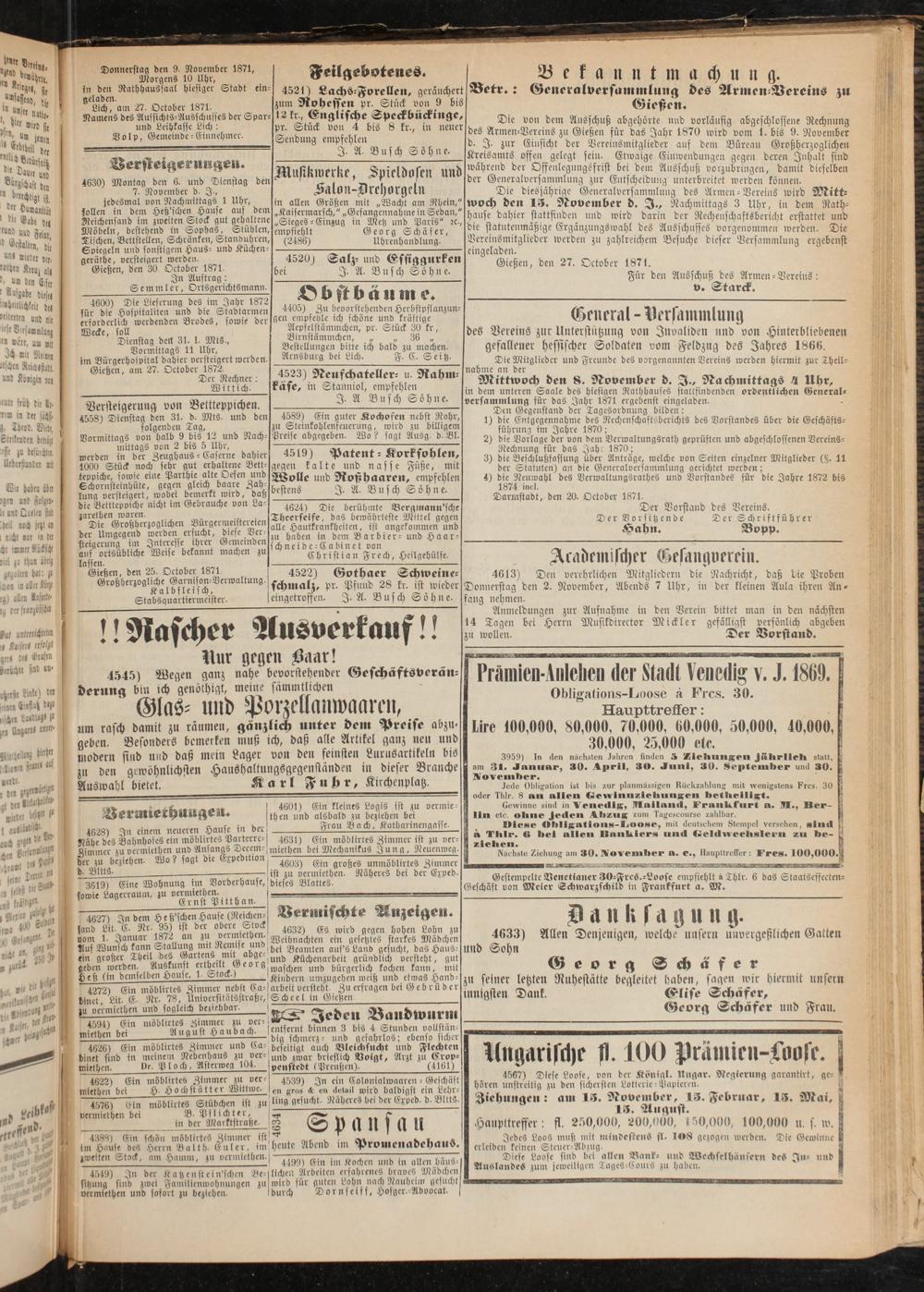 Betr.: Generalversammlung des Armen Vereins zu Gießen.