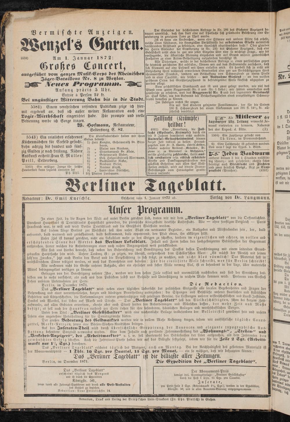 Berlin, üu December 1871. Die Expedition des „Berliner Tageblatt".