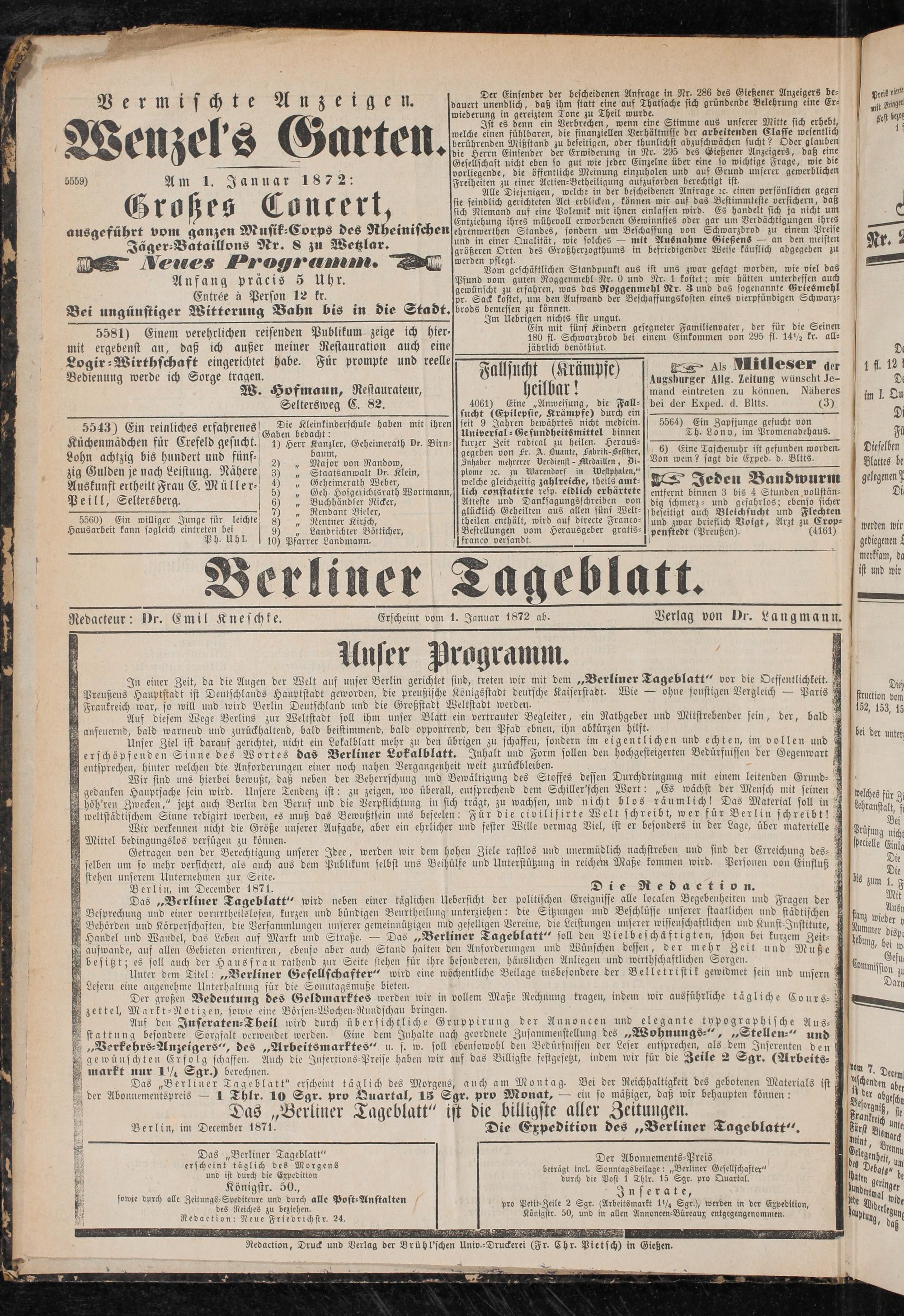 Das „Berliner Tageblatt" erscheint täglich des Morgens und ist durch die Expedition