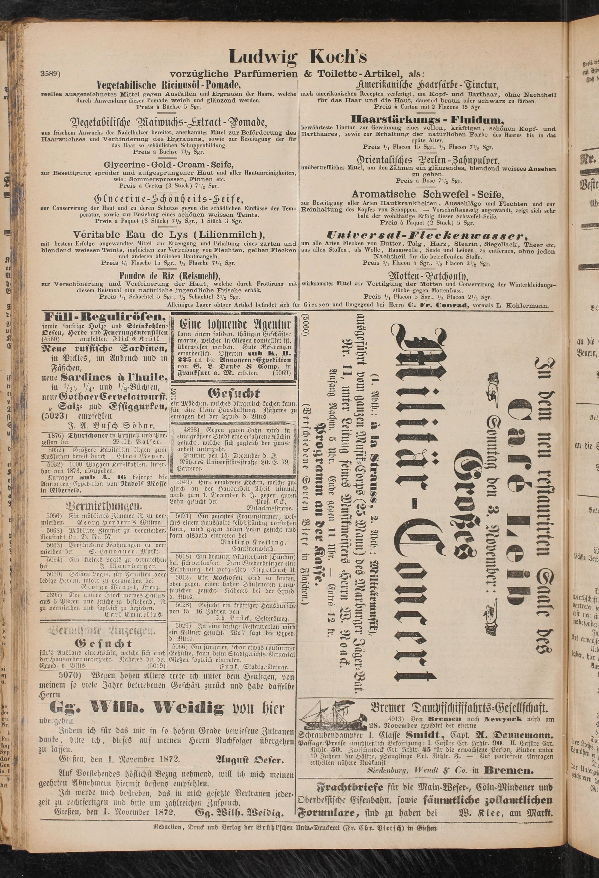 Gießen, den 1. November 1872.