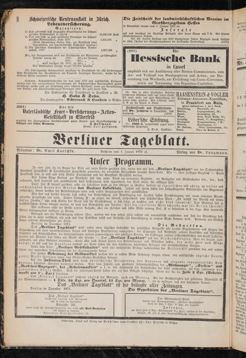 Das „Berliner Tageblatt^ erscheint täglich des Morgens und ist durch die Expedition
