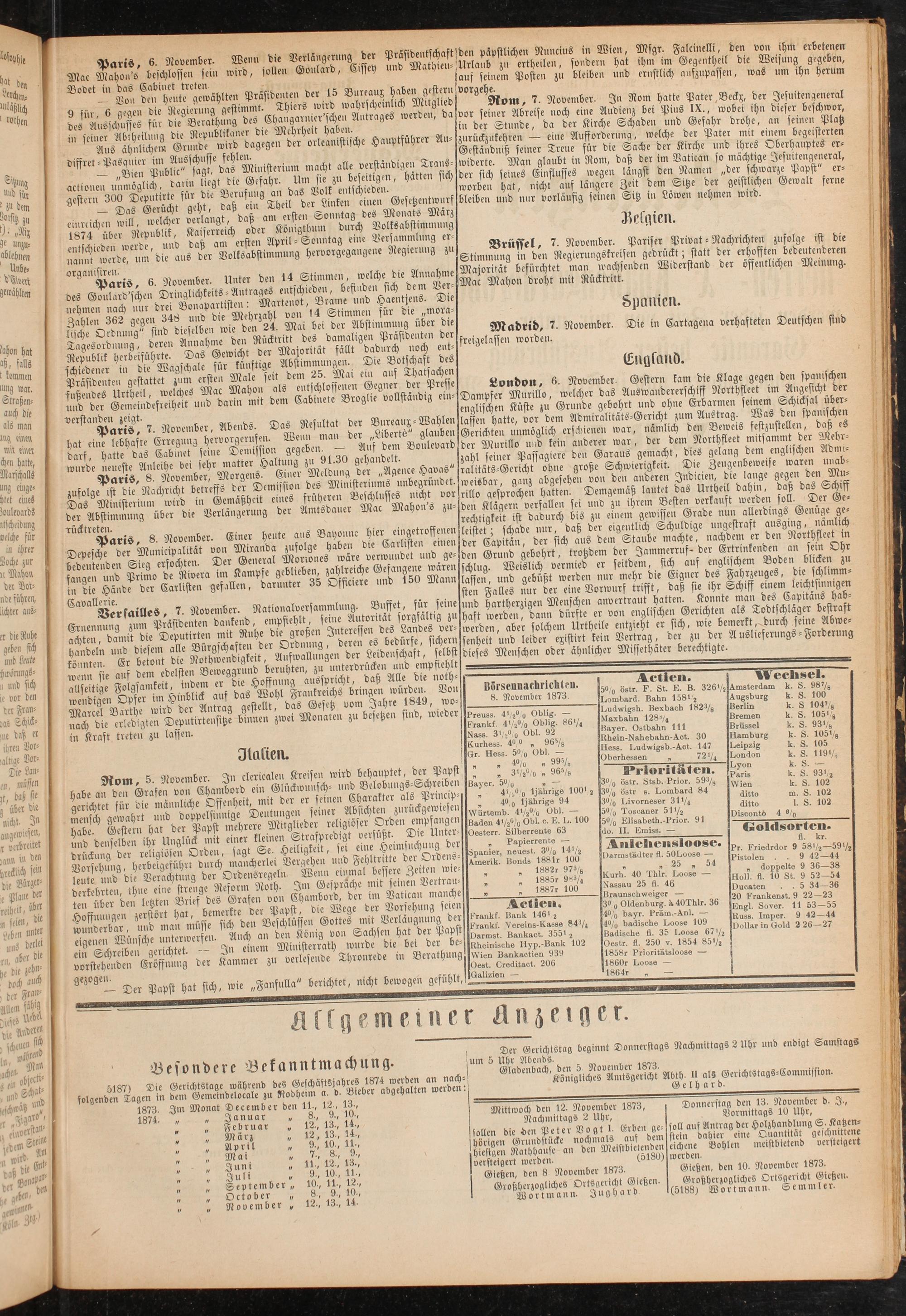 Gießen, den 8 November 1873.