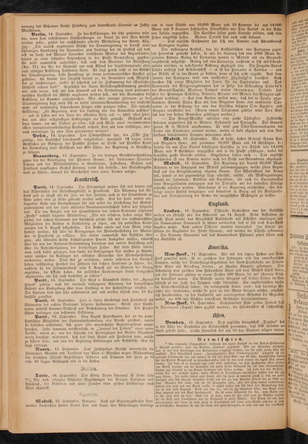 Pari», 16. September. Herr v. Larcy überbringt nach Frohsdorf als meidet, wo 800 mit Büchsen bewaffnete Rothhäute herumschwärmen.