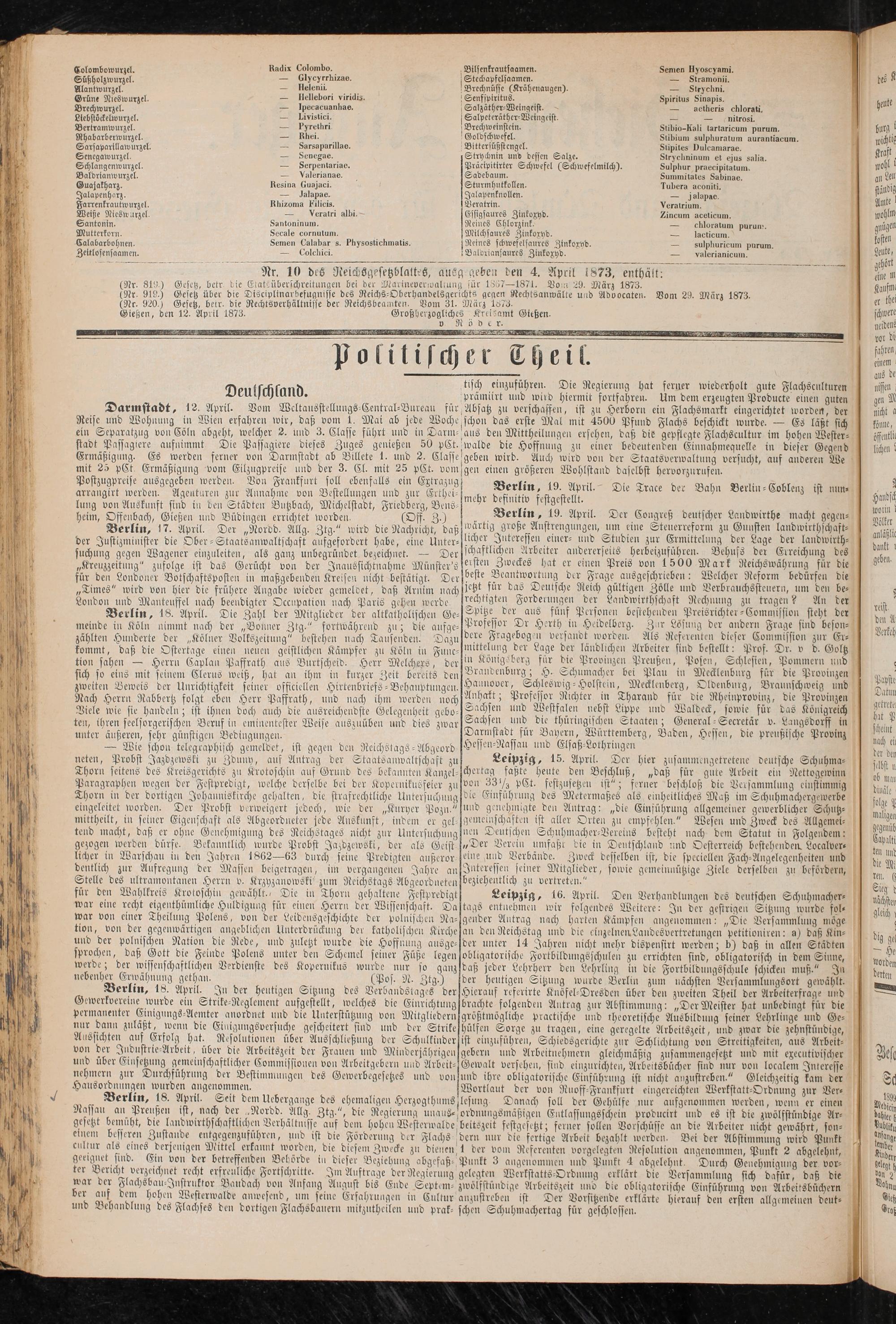 Gießen, den 12. April 1873. Großherzogliches Kreisamt Gießen,