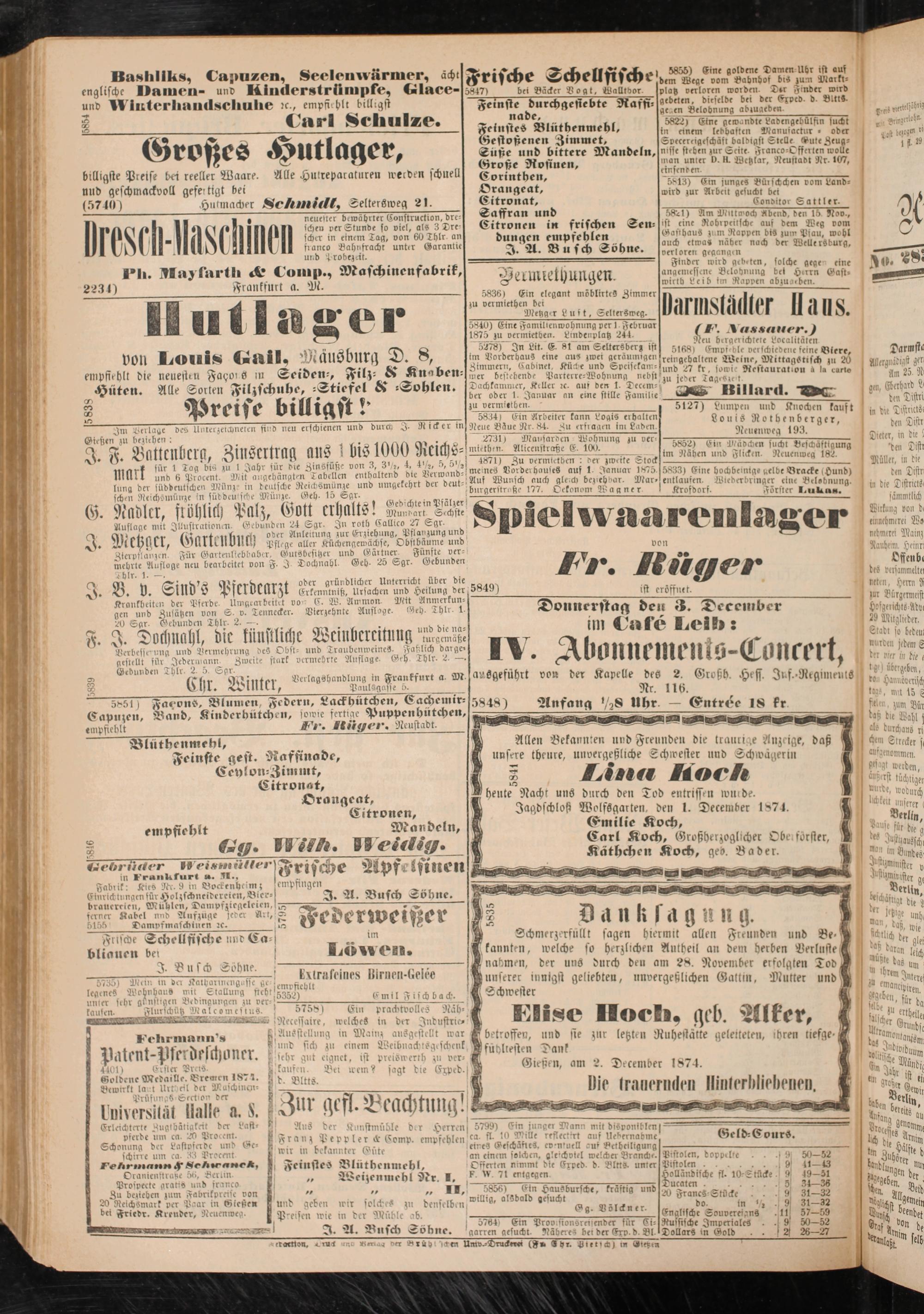 Gießen, am 2. December 1874.