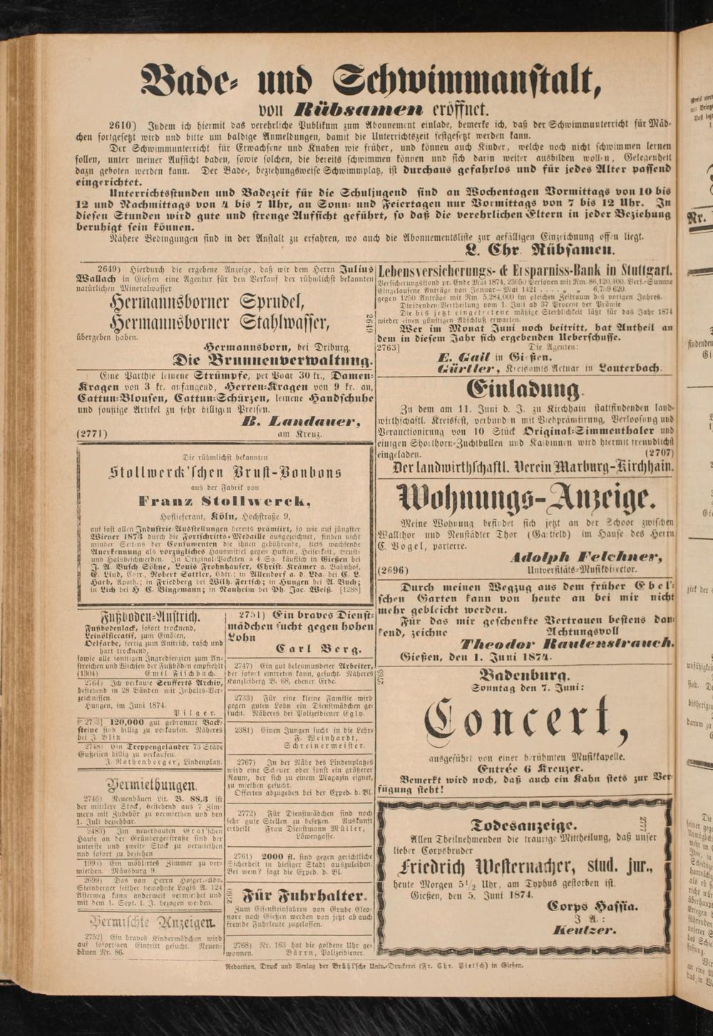 Hungen, im Juni 1874. _____Pilger. ' 27 3] 120,000 gut gebrannte Backsteine sind billig zu vci kaufen. Näheres bei 3 Blitz____________________________