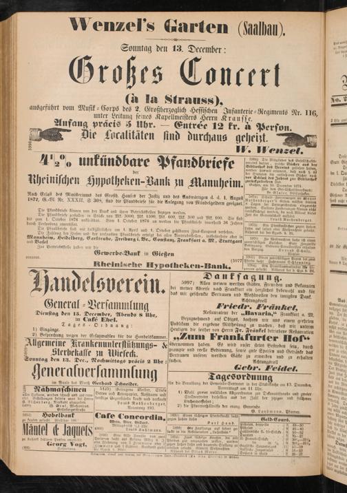 Sonntag den 13. Dec., Nachmittags pracis 2 Uhr: