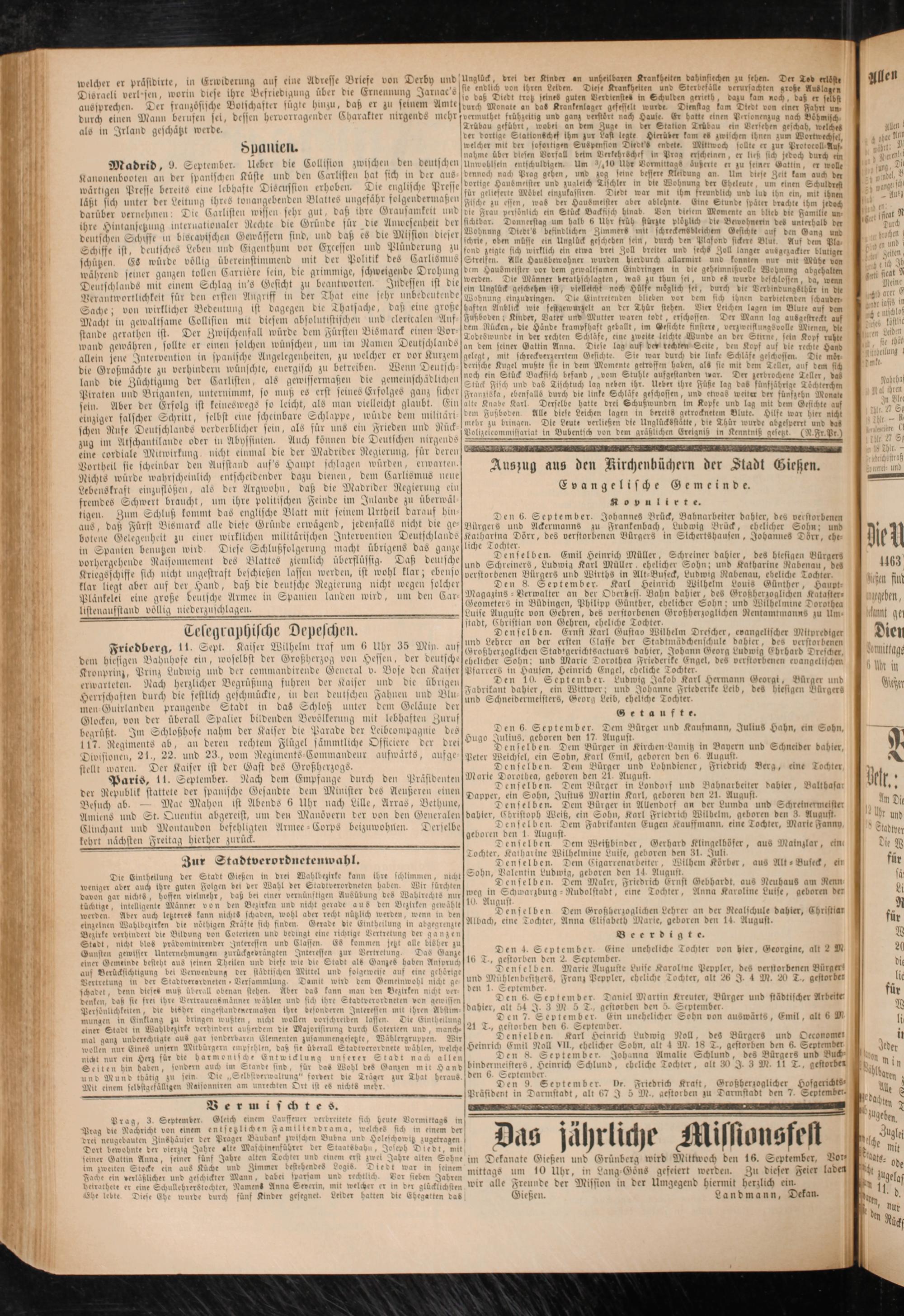 seiner Gattin Anna, seiner fünf Jahre alten Tockier und einem erst zwei Jahre alten Sohne im Dekanate Gießen unb Grünbcrg wird Mittwoch den 16. September, Bot* im iieeittn 6toA rin aus Rüit und 3™"" S°9ie- iem mar m feinem um io Uhr, in Lang Göns gefeiert werden. Zn dieser Feier Intel