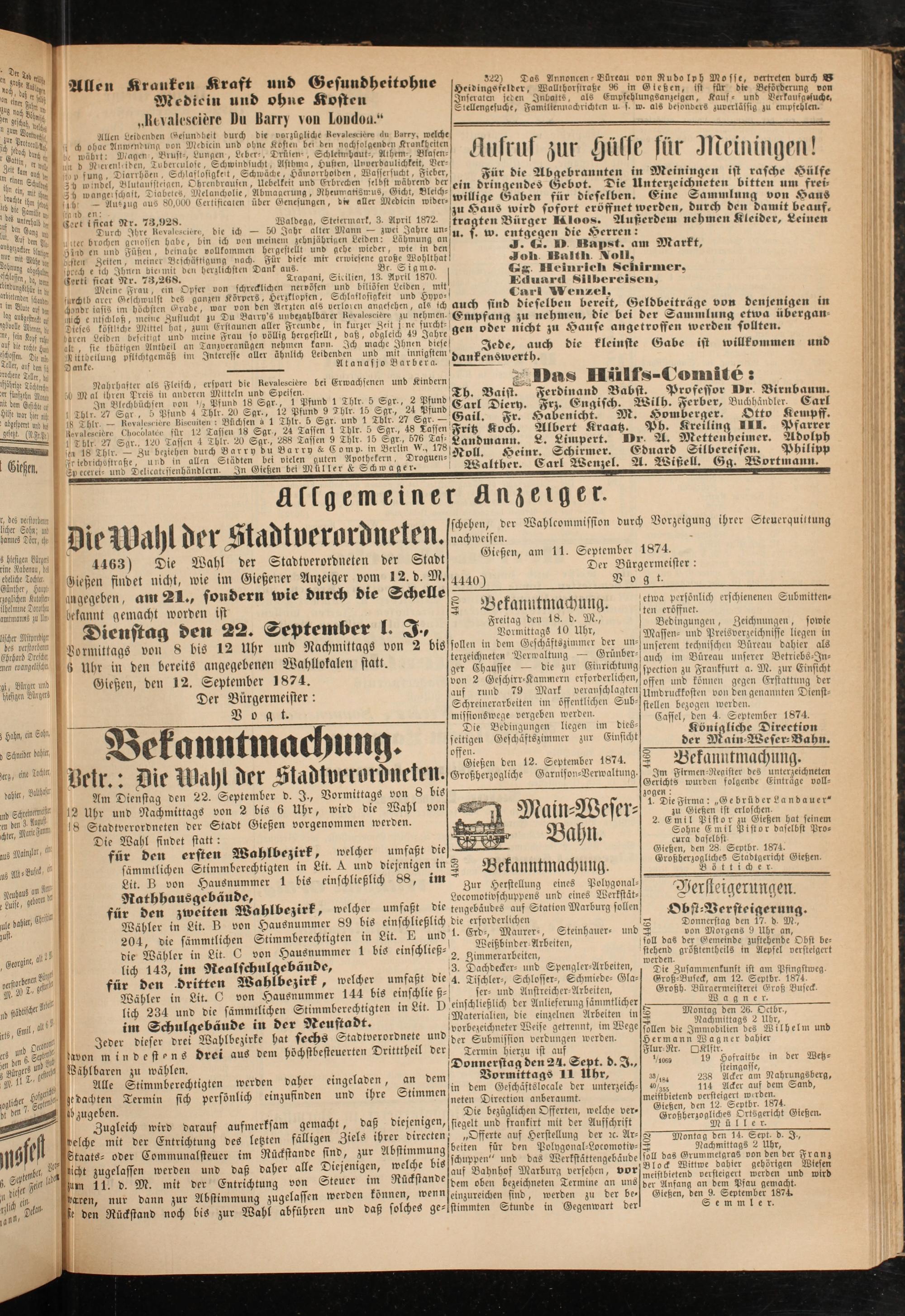 4463) Die Wahl der Stadtverordneten der Stadt ließen findet nicht, wie im Gießener Anzeiger vom 12 d. M. ,ui gegeben, am 21., sondern wie durch die Schelle bekannt gemacht worden ist