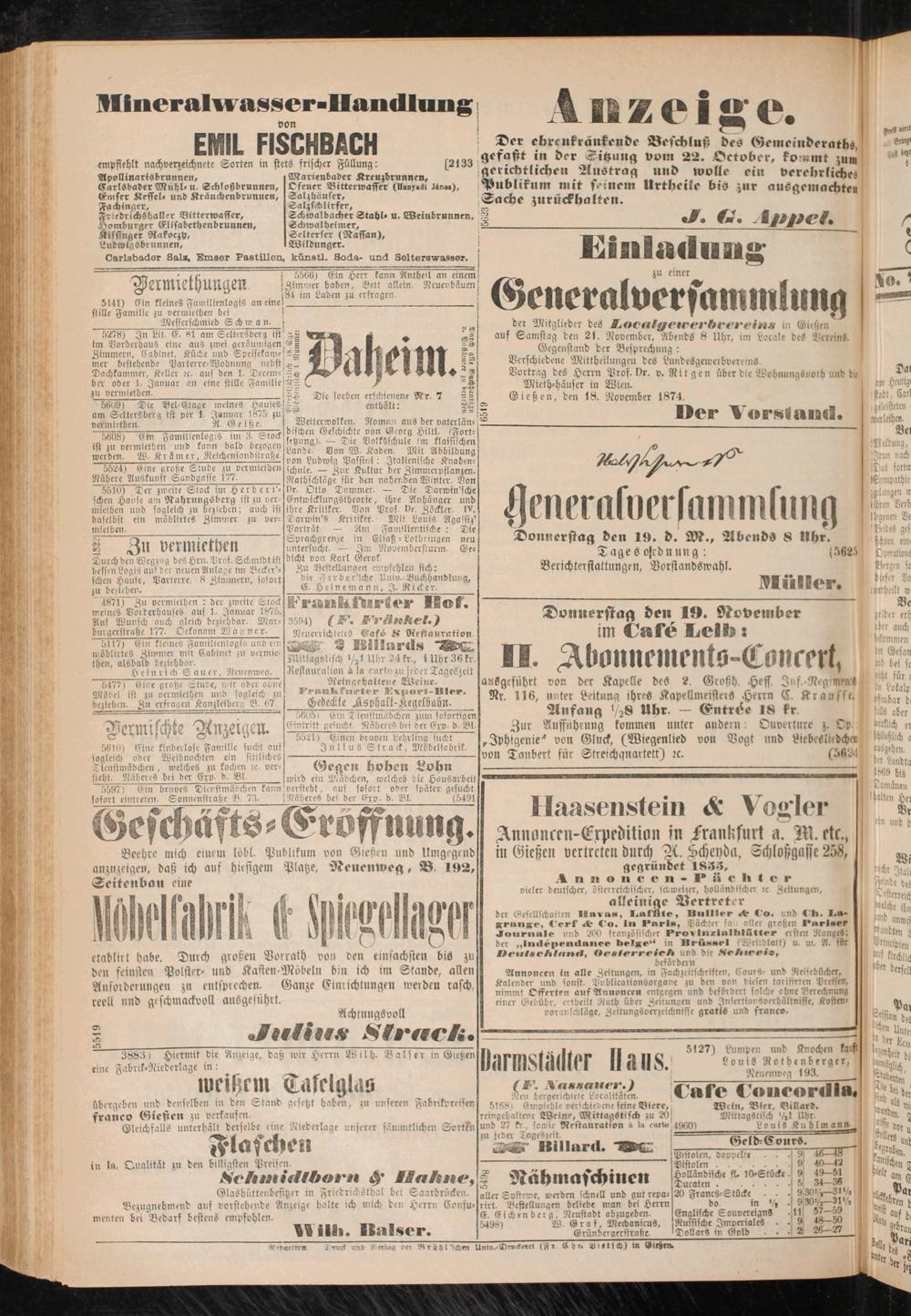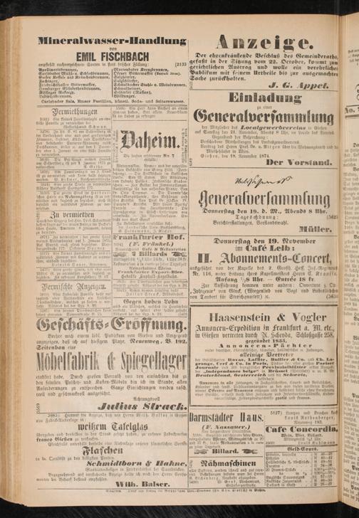 Annoncen-Expedition in /rankfurt a. 311. etc, in Gießen verirrten durch M. Kcheydn, Tchloßgasse 258, gegrünvet 1835,