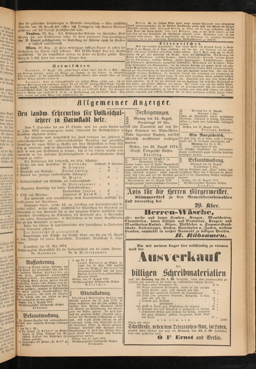 Gießen, den 4. August 1874. Großherzogliches Landgericht Gießen.