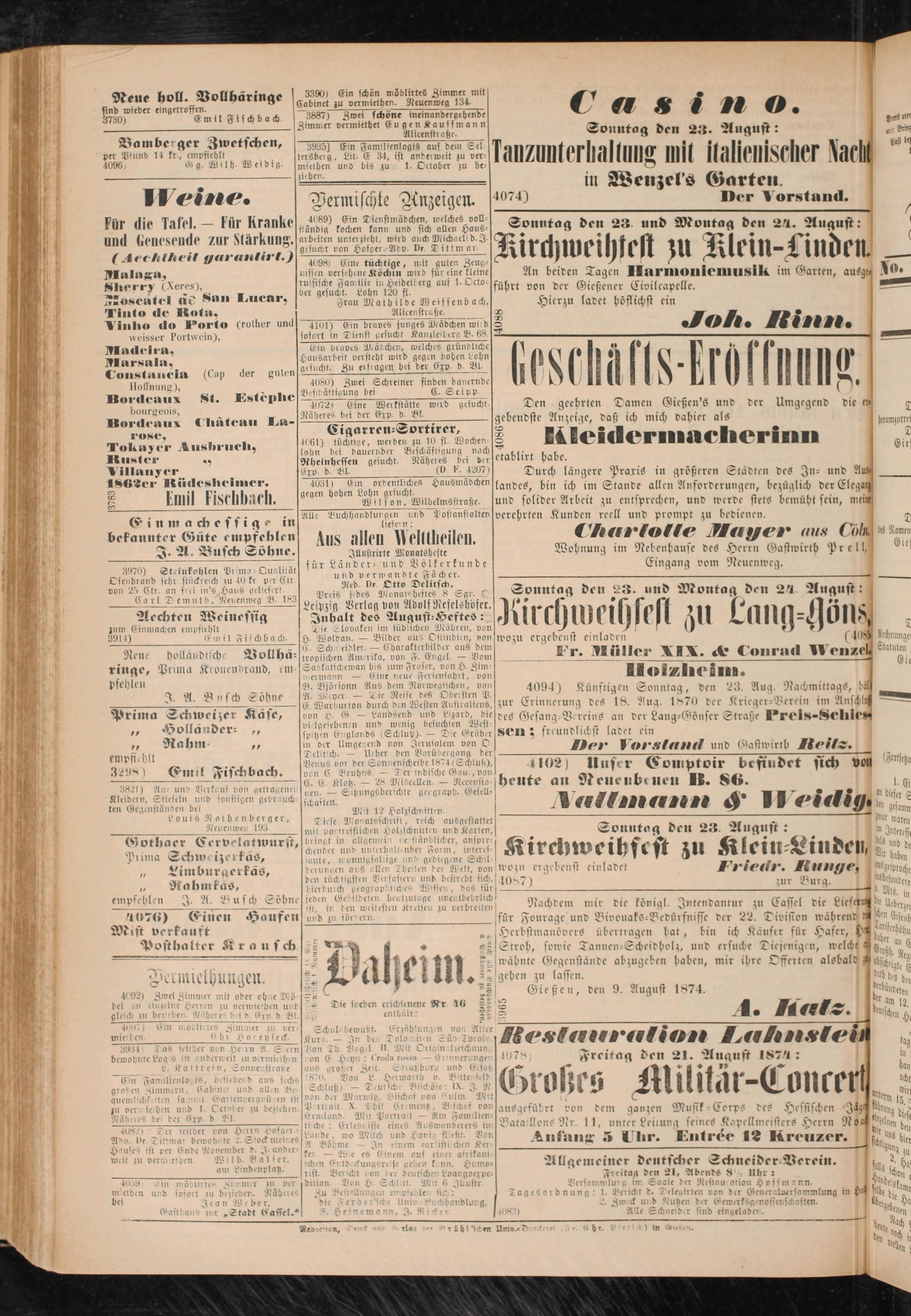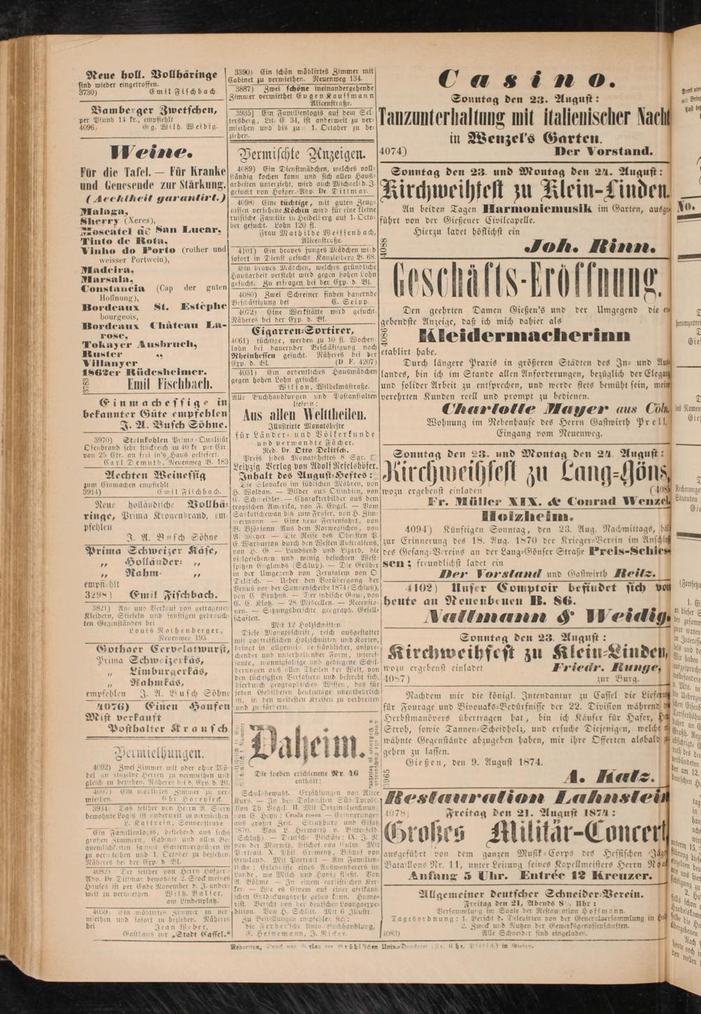 Gießen, den 9. August 1874. t ! en