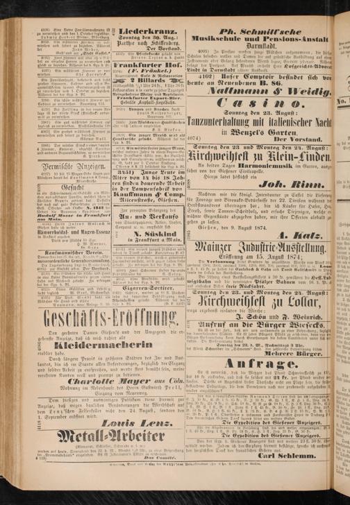 -V* W- w " Bon dcr (5^p. d. Glcßluer Anzeigers sind nur weitere 23 p. 30 fr. klön'