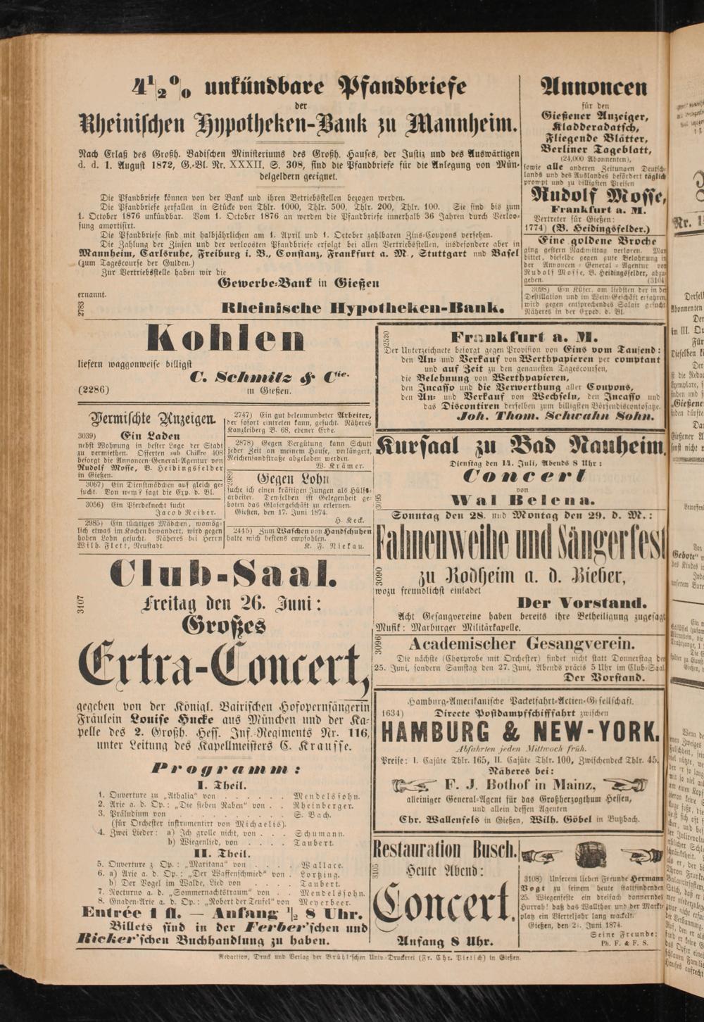 plah ein Vierteljahr lang wackelt. Gießen, den 2*. Juni 1874.