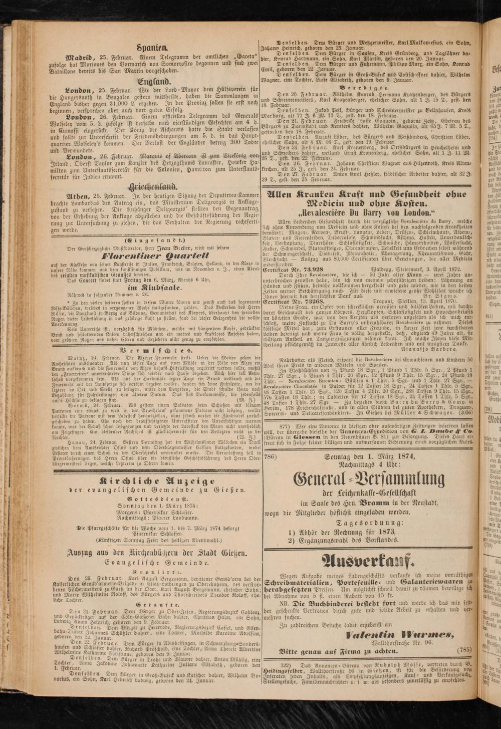 786) Sonntag den 1. März 1874,