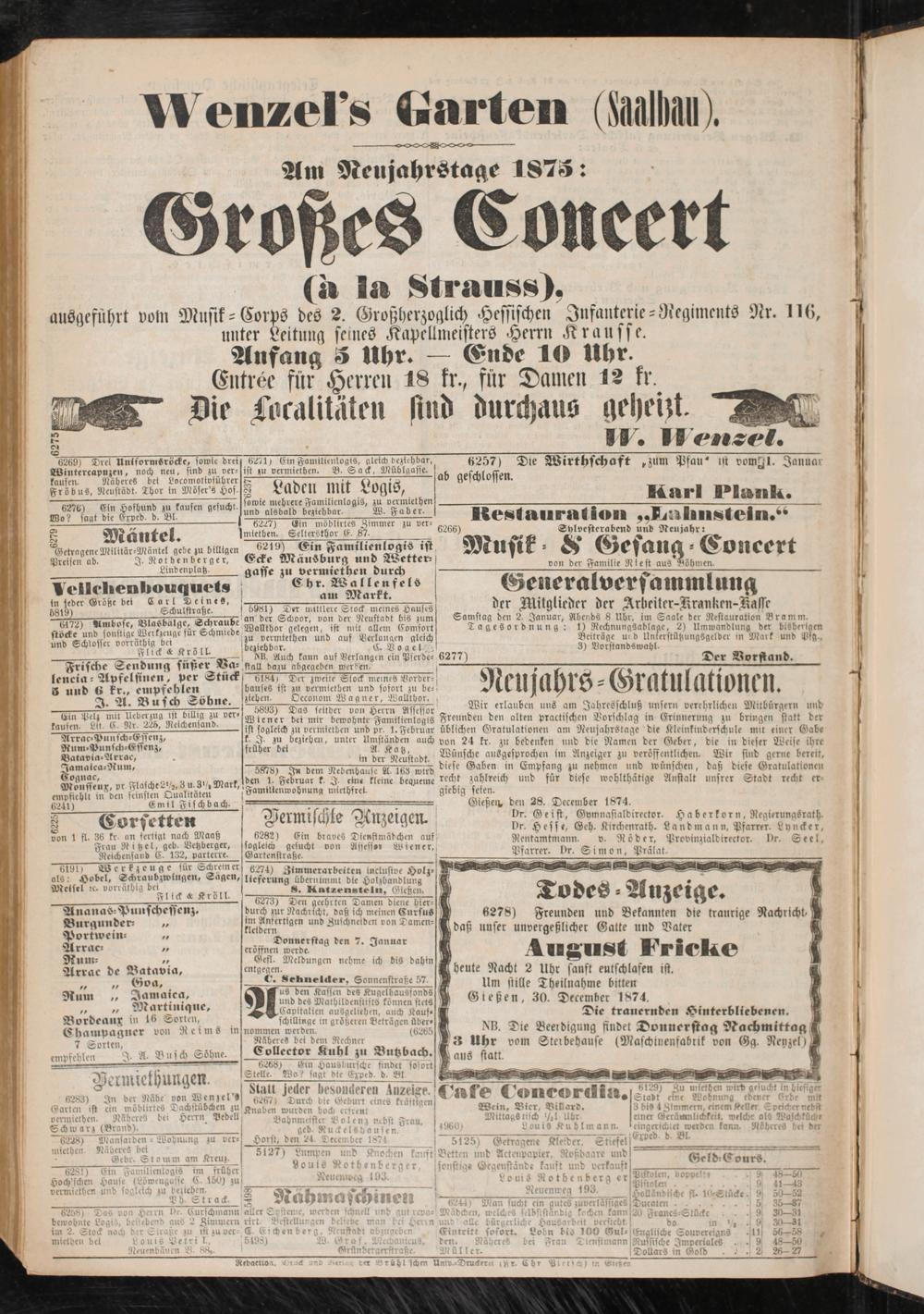Wir erlauben uns am Jahrcsschluh unfern verchrlichcn Mitbürgern unb Freunden den alten practischcn Vorschlag in Erinnerung zu bringen statt der üblichen Gratulationen am Neujabrstage die Kleinkinderlchule mit einer Gabe von 24 kr. zu bedenken und die Namen der Geber, die in dieser Weise ihre Wünsche ausgesprochen im Anzeiger zu veröffentlichen. Wir sind gerne bereit, diese Gaben in Empfang zu nehmen und wünschen, daß diese Gratulationen recht zahlreich und für diese wehlthätige Anstalt unsrer Stadt reckt er giebig seien.