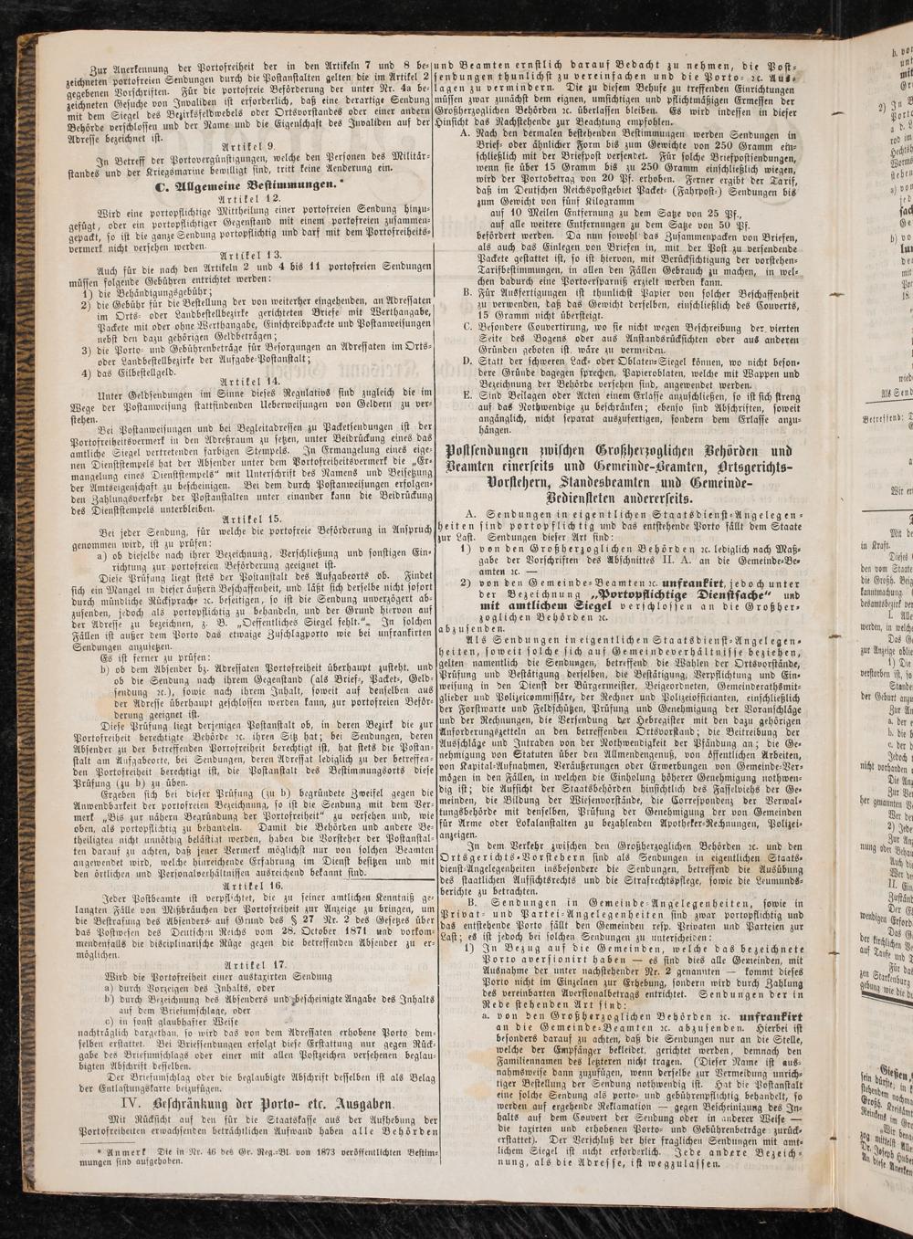 IV. Bkschränkung der Porto- etc. Ausgaben