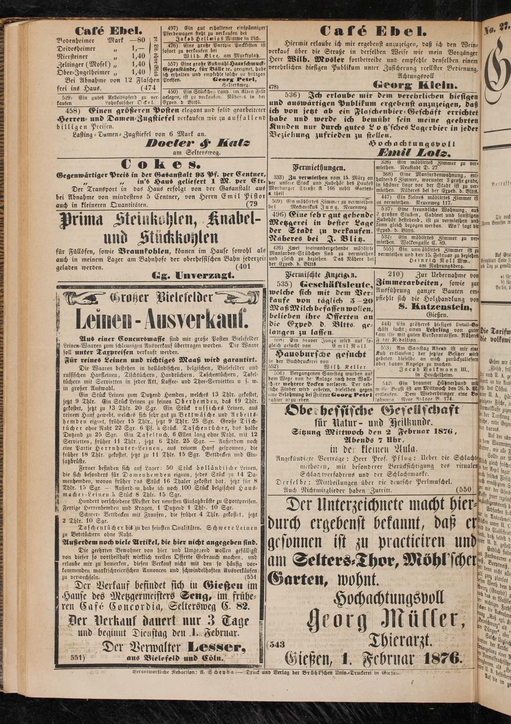 Sitzung Mittwoch den 2 Februar 1870, Abends 7 Uhr.