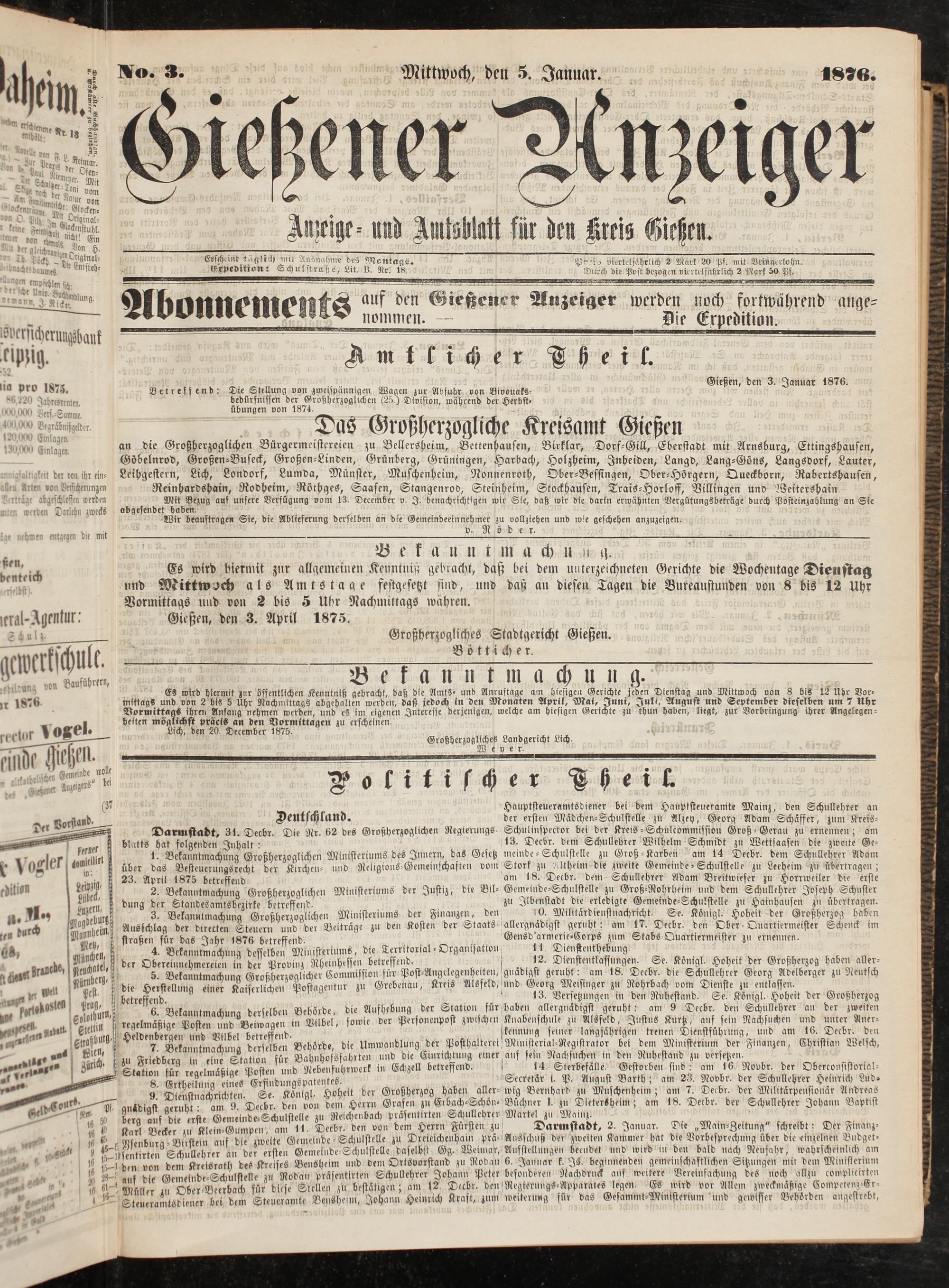 IVo. ». Mittwoch, den 5. Januar. 1876.