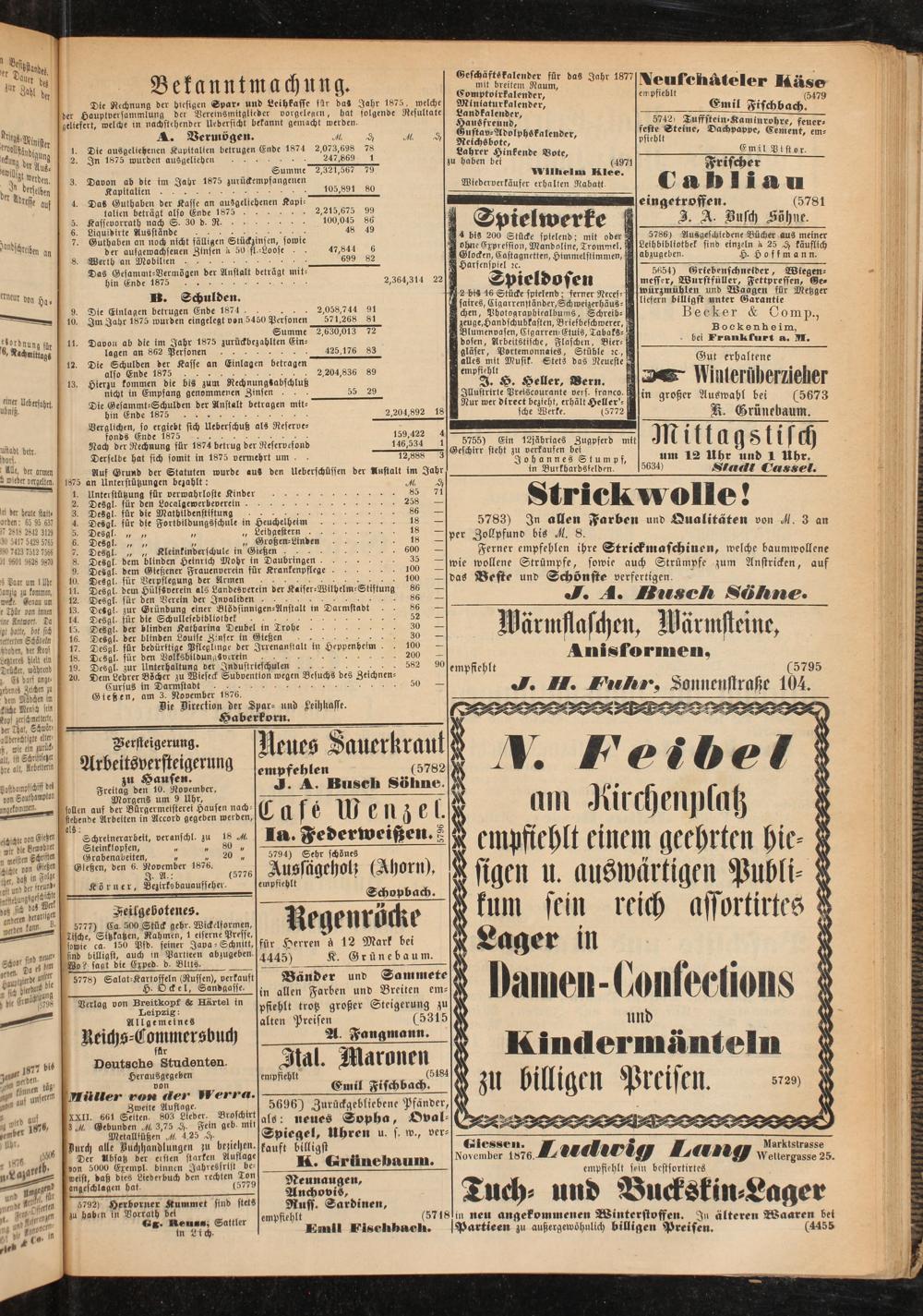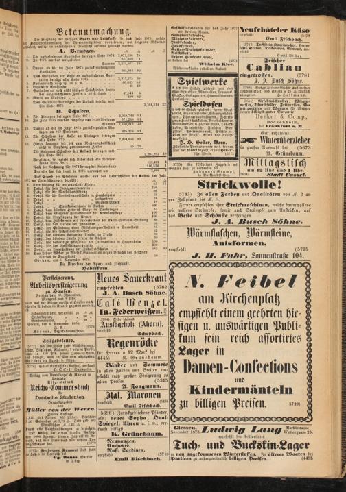 Die ausgeliehenen Kapitalien betrugen Ende 1874