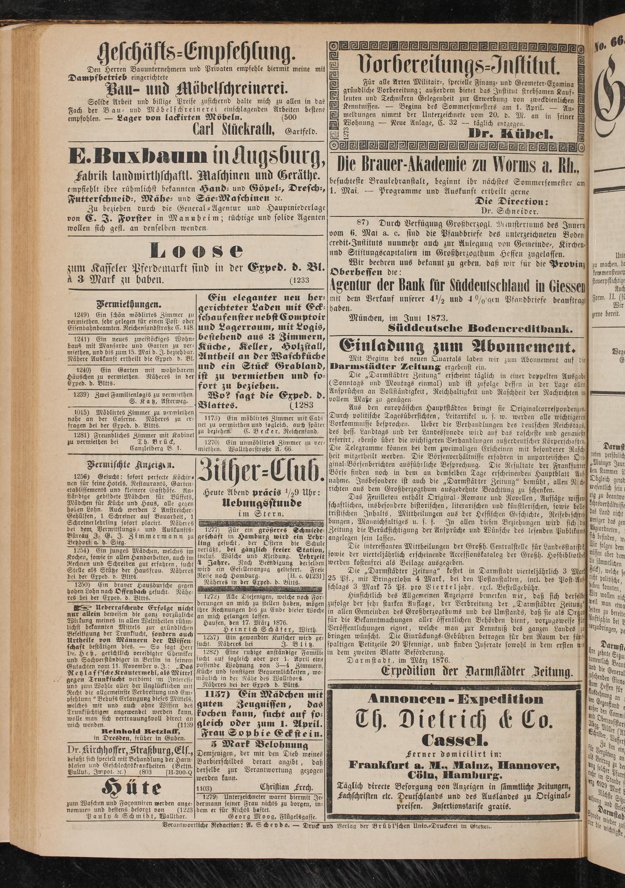 Mit Beginn des neuen Quartals laden wir zum Abonnement auf die Darmstädter Zeitung ergebenst ein.