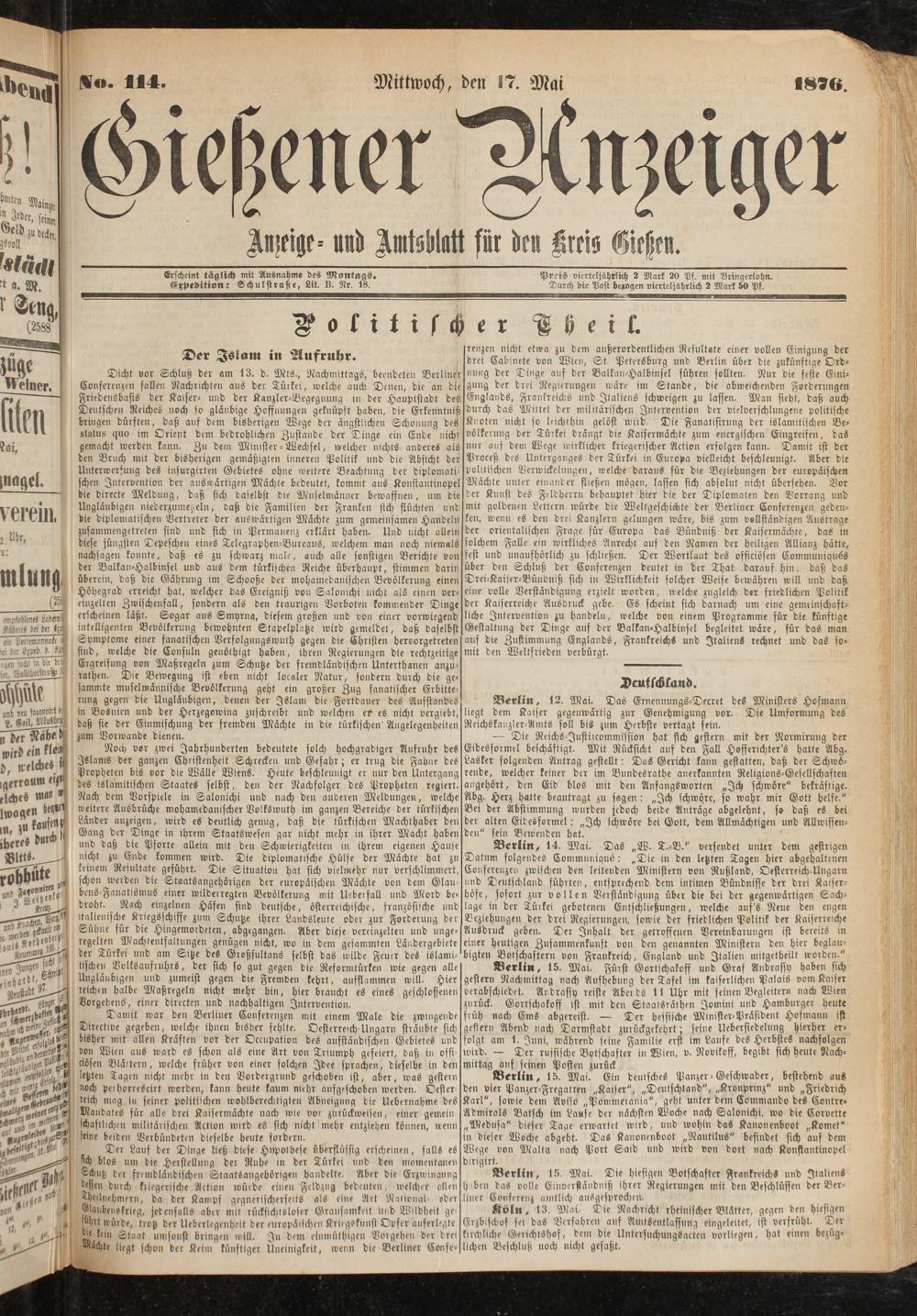 Wo. 114. Mittwoch, den 17. Mai 1876.