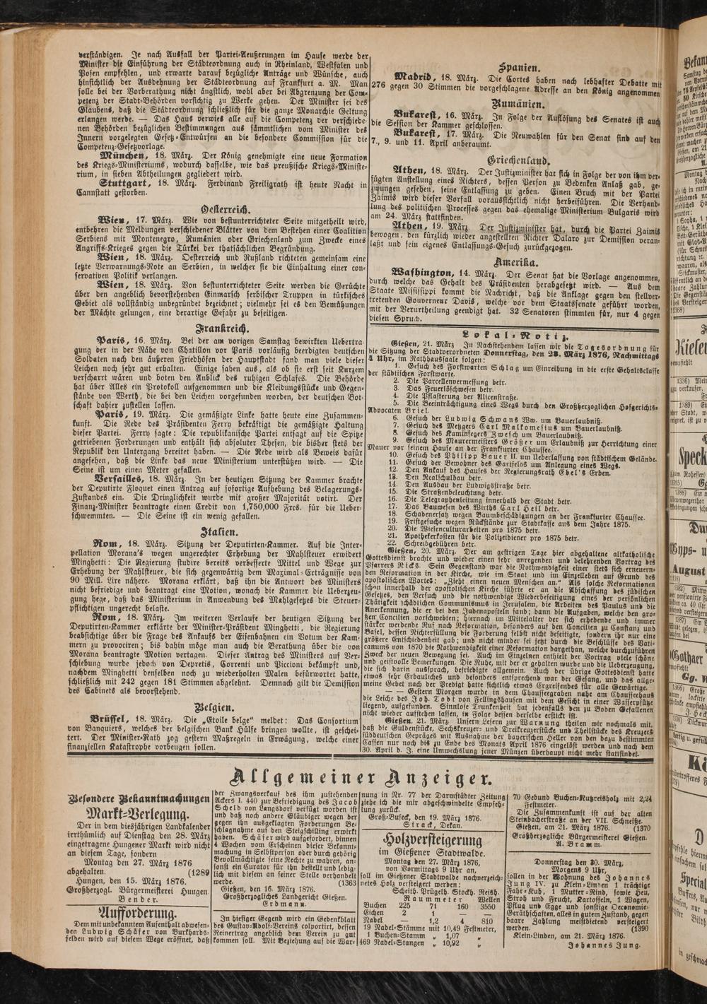 Montag den 27. März 1876, von Vormittags 9 Uhr an, soll im Gießener Stadtwalde nachverzeich- veted Holz versteigert werden: