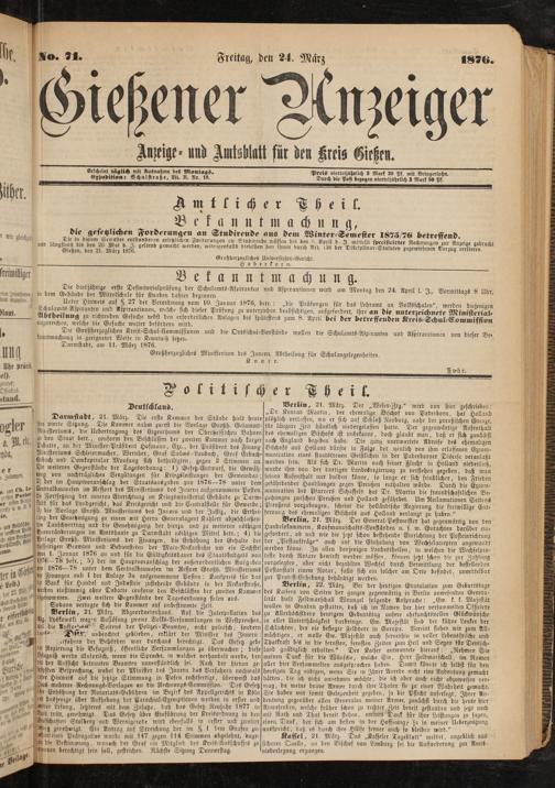 An?eise- unb Amtsblatt für tat Kreis Gießen.