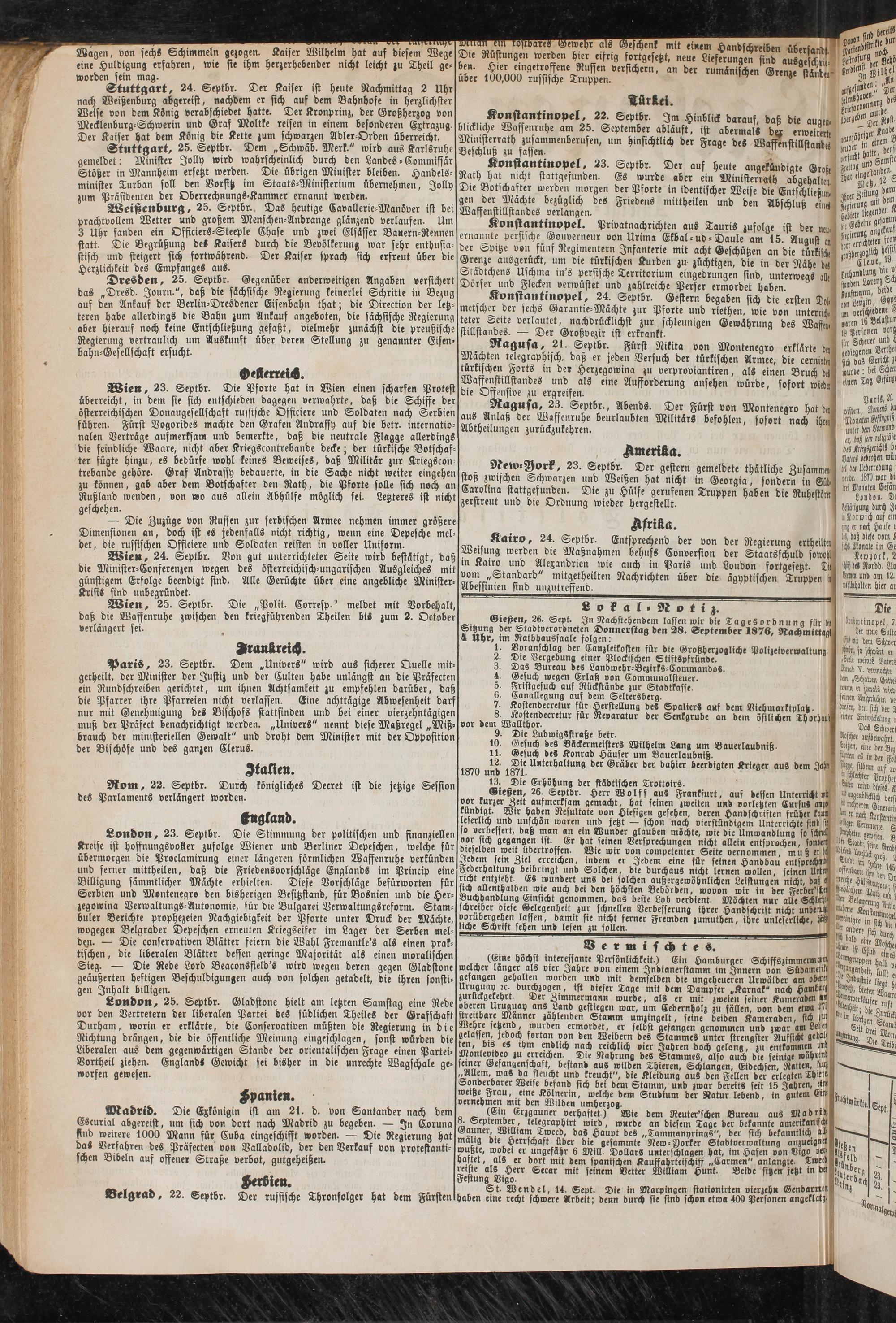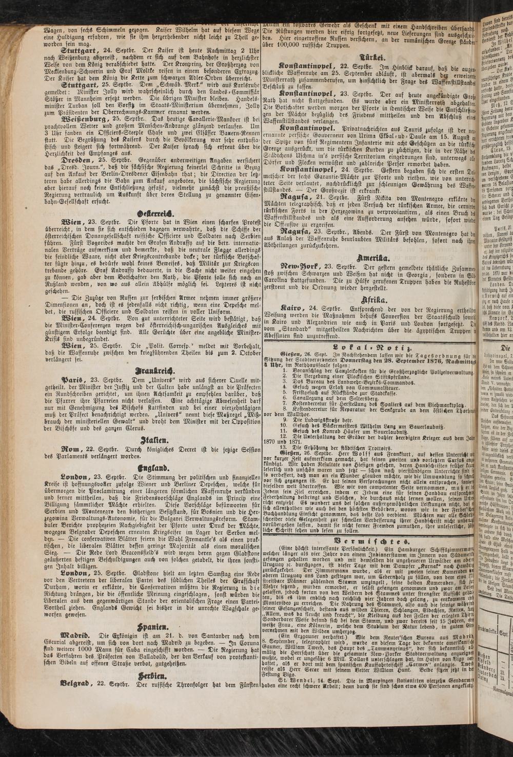 Gießen, 26. Sept. In Nachstehendem lassen wir die Tagesordnung für b« Sitzung der Stadtverordneten Donnerstag den 28. September 1876, Nachmittag 4 Uhr, im Nathhaussaale folgen: ,