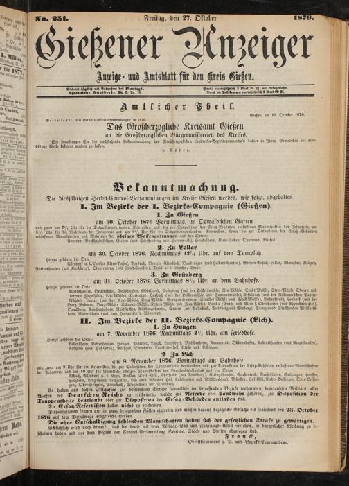 Die diesjährigen Herbst Control-Versammlungen im Kreise Gießen werden, wie folgt, abgehalten: