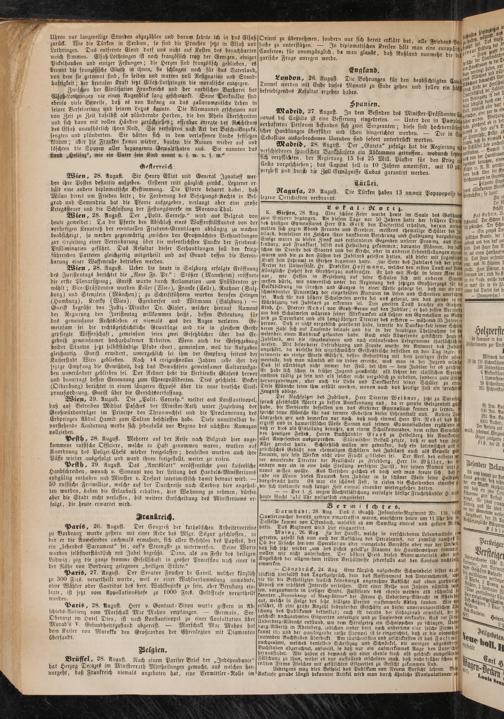 Paris, 28. August. Herr v. Gontaut-Biron wurde gestern in Abschieds-Audienz vom Marschall Mae Mahon empfangen. — Germain, See Oberarzt im Hotel Dieu, ist nach Konstantinopel zu einer Consultation über Murad's V. Gesundheitszustand abgereist. — Marschall Mac Mahon hat dem Kaiser von Marokko den Großcordon der Ehrenlegion mit Diamanten übersandt.
