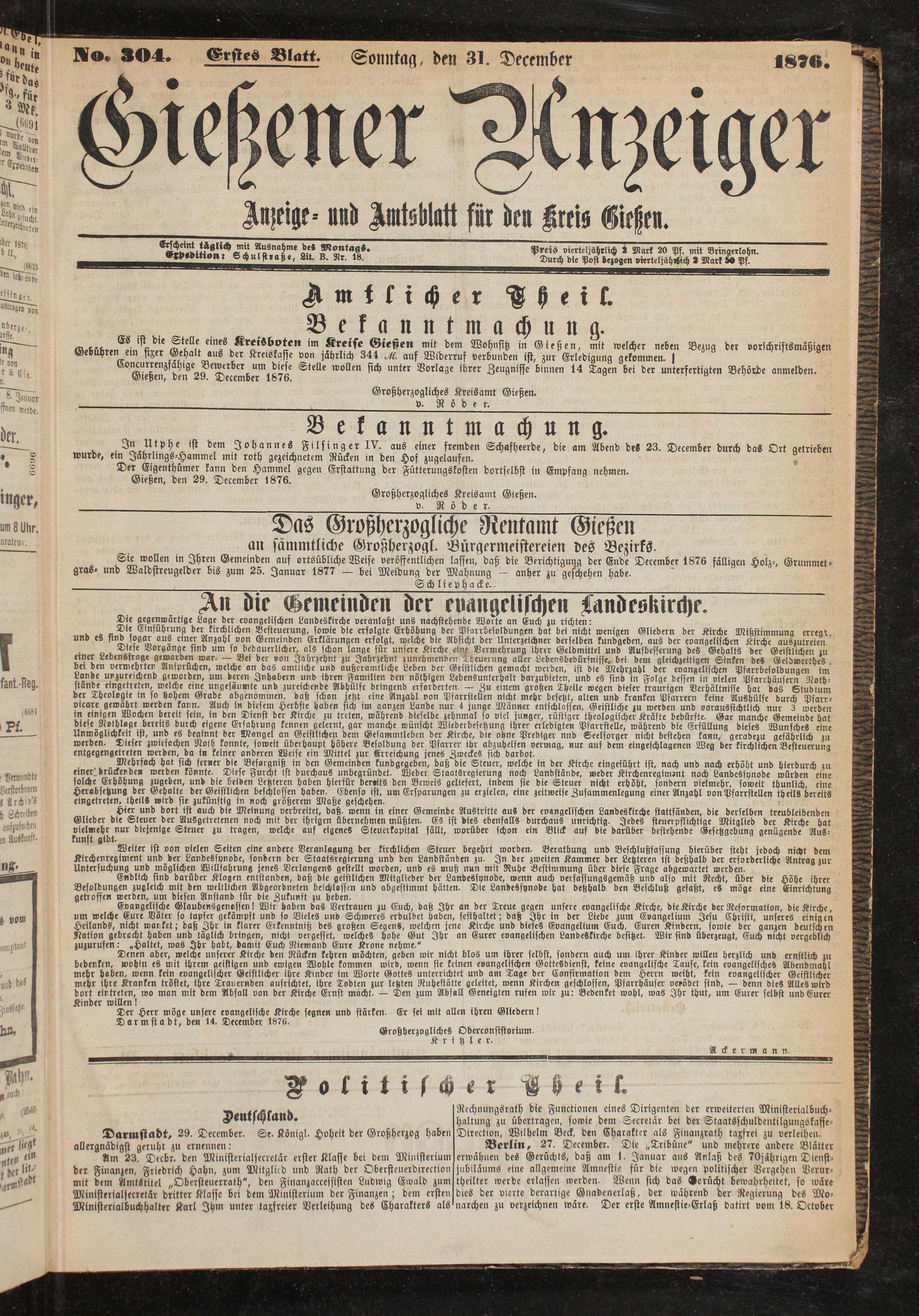Ho* 304. Erstes Blatt. Sonntag, den 31. December 1896«