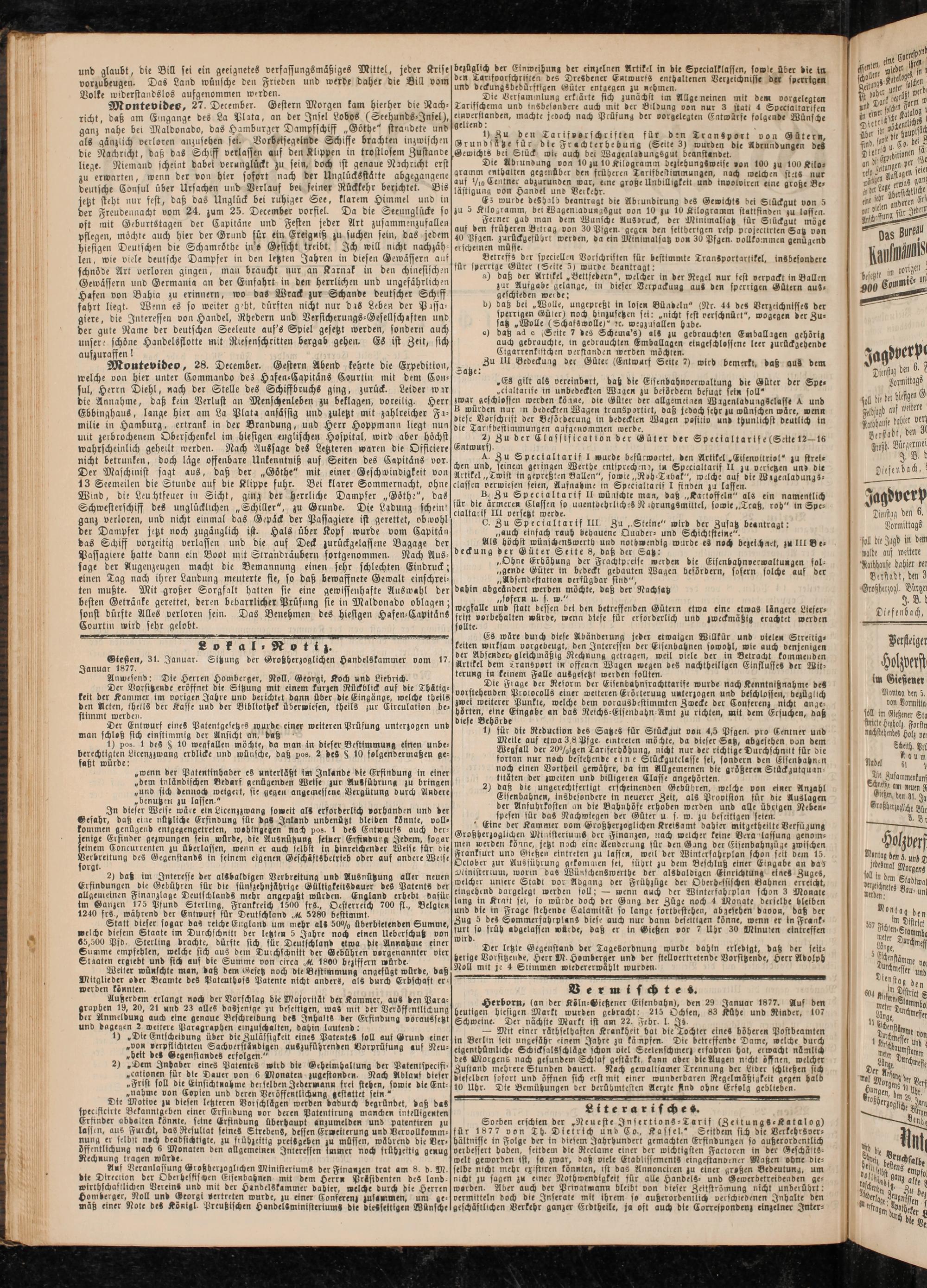 Gießen, 31. Januar. Sitzung der Grobherzoglichen Handelskammer vom 17. Januar 1877.