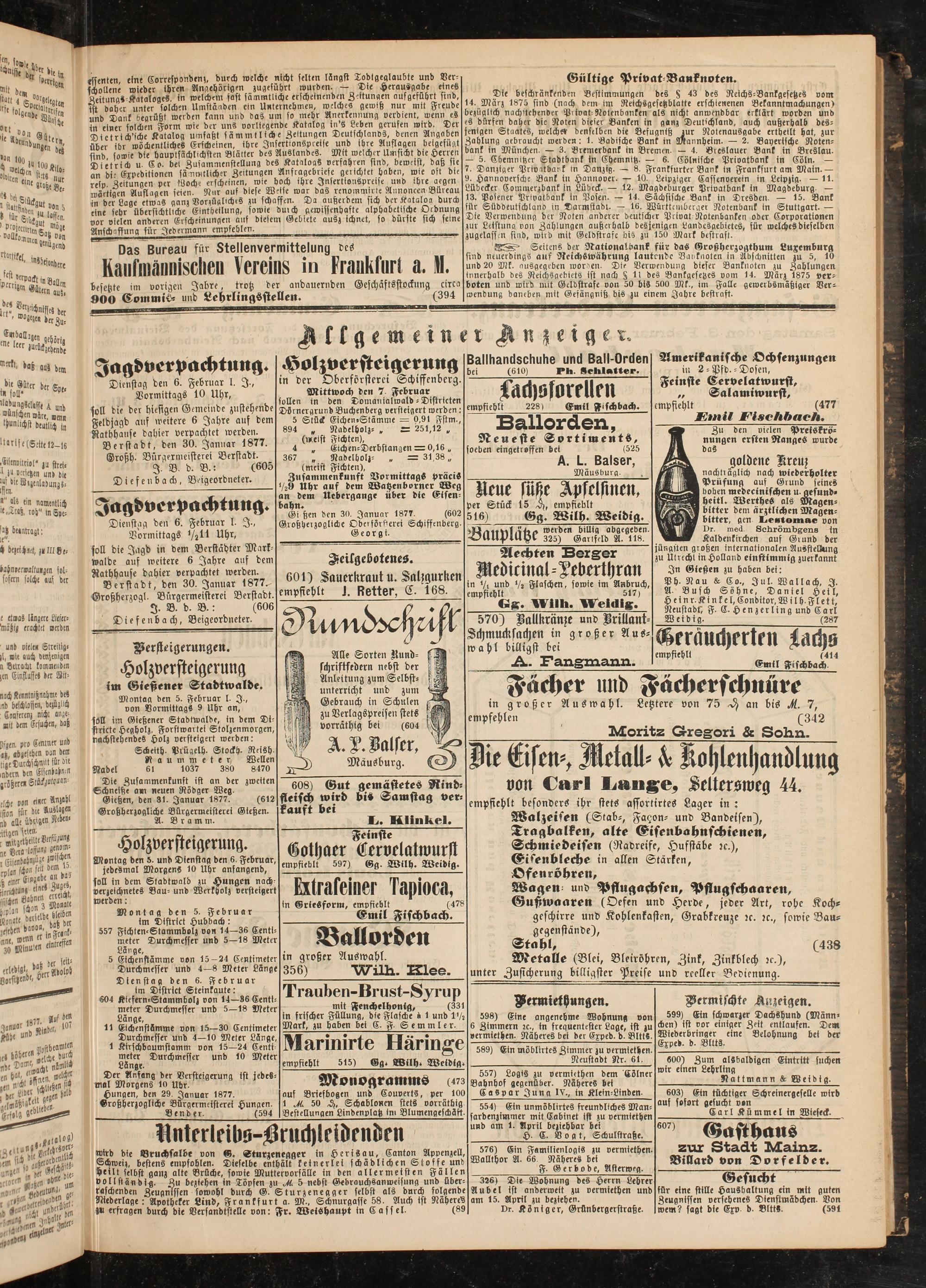 Das Bureau für Stellenvermittelung ves Kaufmännischen Vereins in Frankfurt a. M. besetzte im vorigen Jabre, trotz der andauernden Geschäftsstockung circa 900 CornmiS- und Lehrlingsstellen. (394