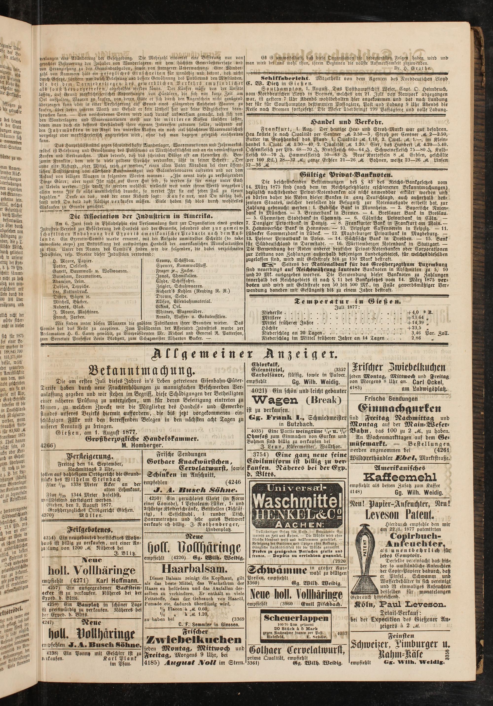 Gießen, den 2. August 1877. Großherzogliches Ortsgericht Gießen.