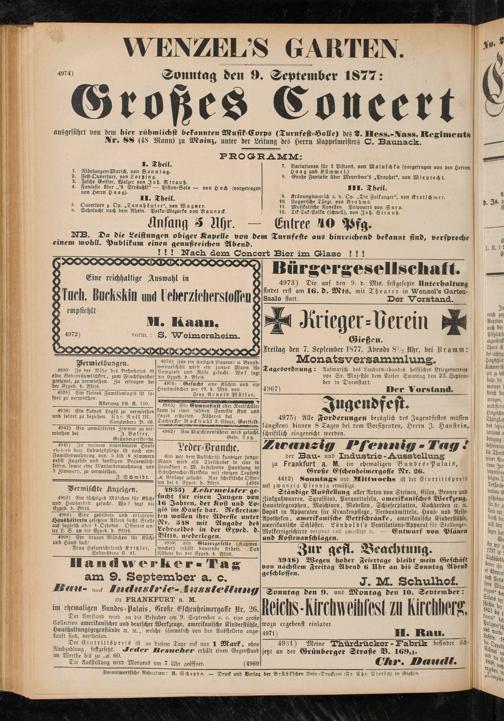 4973) Die auf den 9. d. Mts. festgesetzte Unterhaltung findet erst am 16* d. Nkts. mit Theater in Wenzel’s Garten- Saale statt.______________________Der Vorstand,
