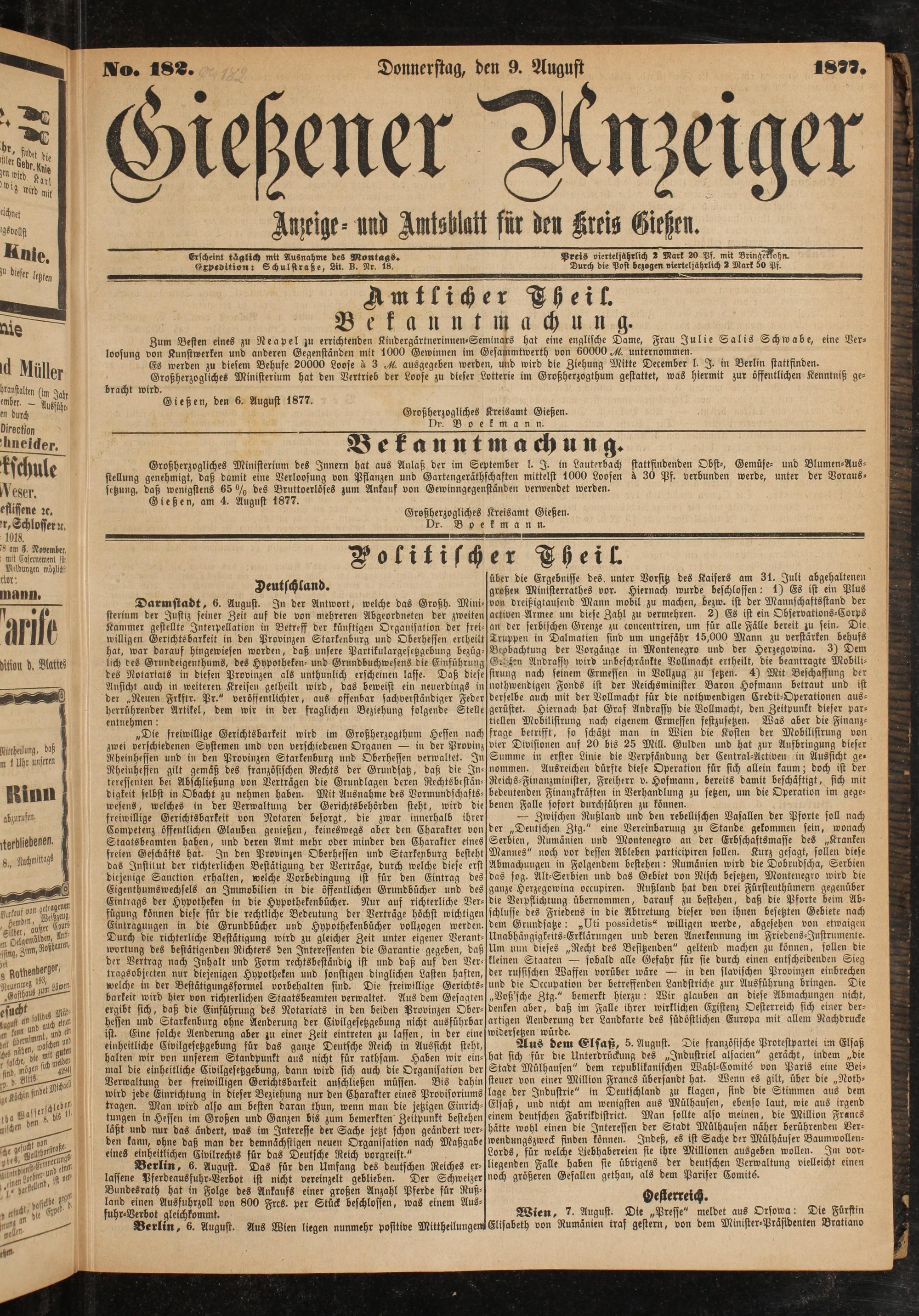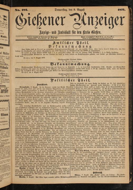 Ufo. 18«. Donnerstag, den 9. August 1873»