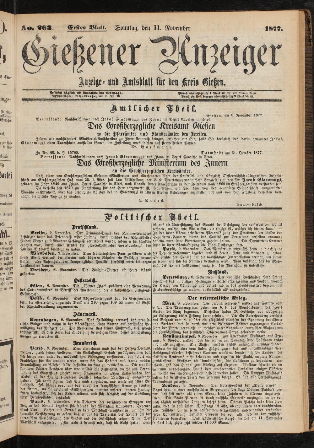 Gießen, am 8. November 1877.