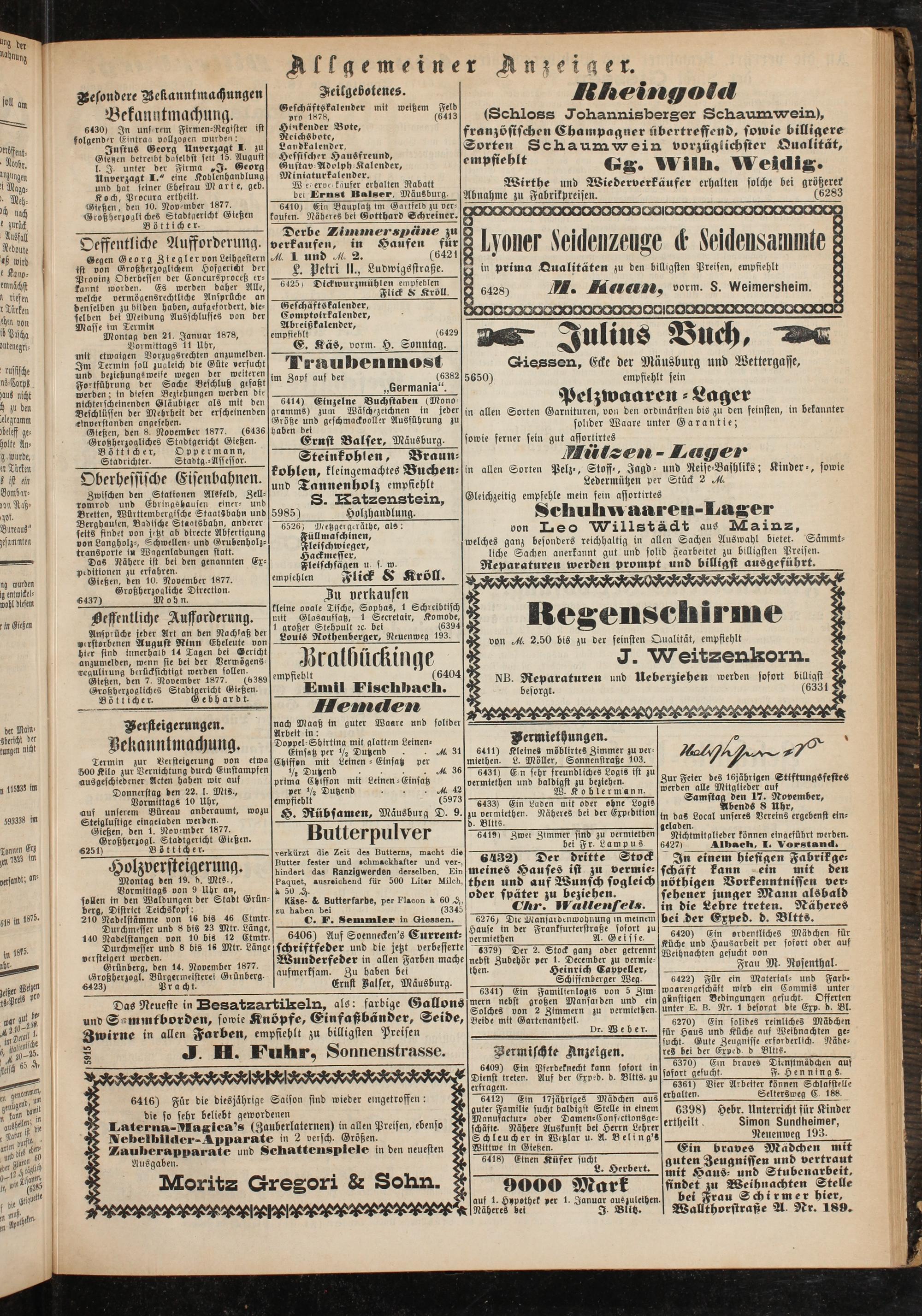 Gießen, den 1. November 1877. Großherzogl. Stadtgericht Gießen.